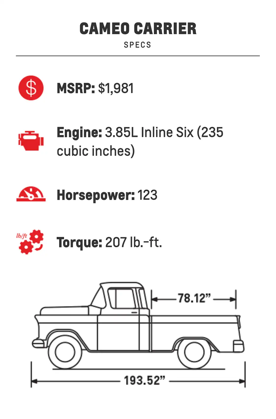 The “Cameo Carrier” introduced the first fleetside bed on a Chevy, which would become a popular option on trucks from then on.