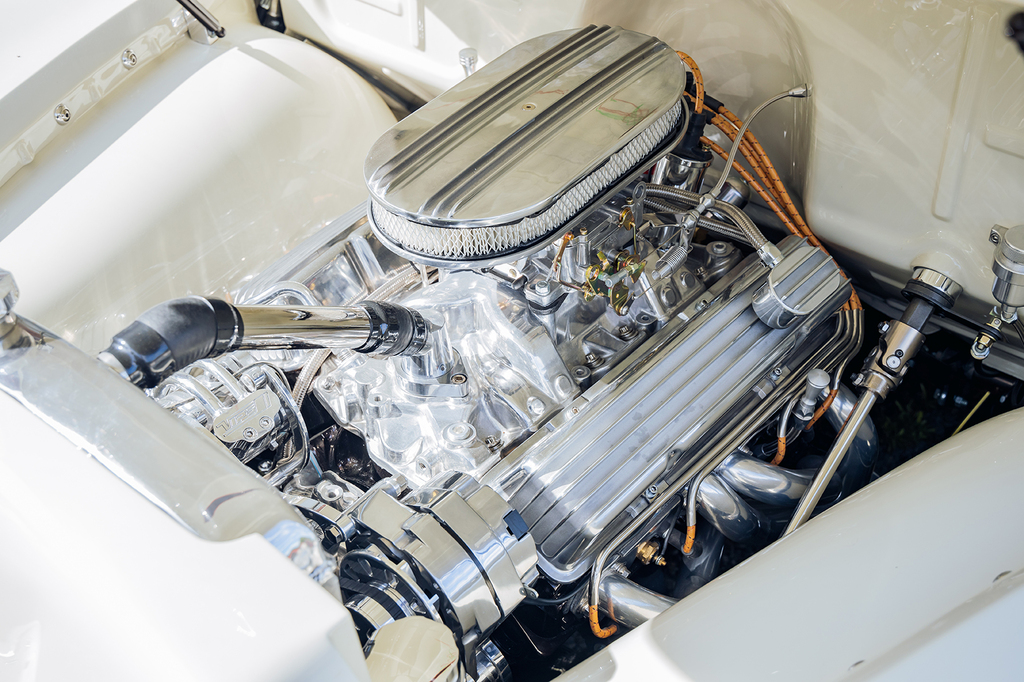 The chassis was kept relatively simple for ease of serviceability, and retains the factory 1950 rails. Fat Man Fabrications control arms were used in conjunction with Ridetech coilovers up front, while another pair of Ridetech coilovers were used with a 4-link at the rear. Drilled and slotted rotors were mounted all around for improved braking, with an under-floor booster for a cleaner appearance under the hood. Once the chassis was buttoned up, BFGoodrich G-Force Comp 2 tires were mounted on 18 and 20-inch US Mags Heavy Artillery wheels for the perfect retro-yet-modern combination.