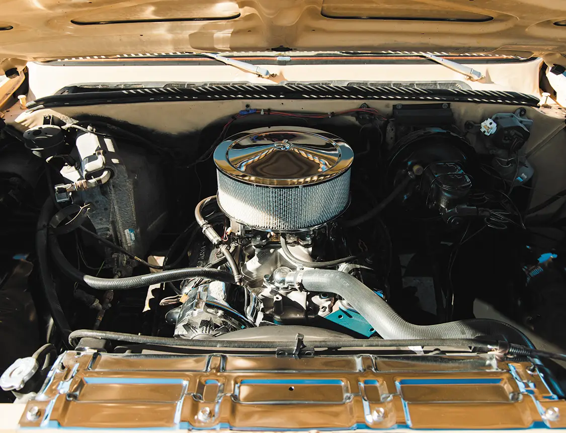 The existing transmission was then replaced with a TH400 turbo with a mild shift kit. The sound this truck produces is nothing short of incredible.