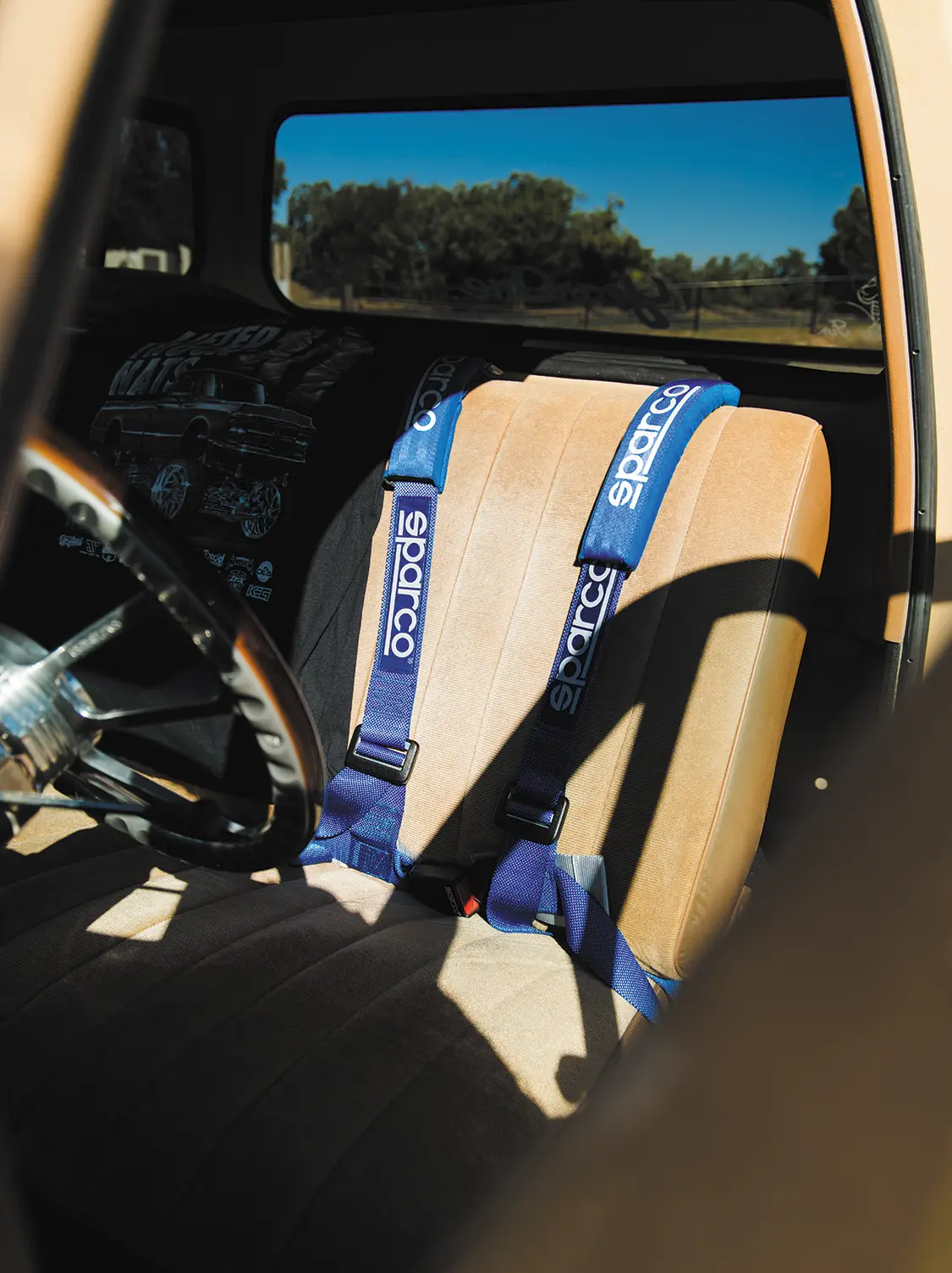The interior is extremely clean, with a billet steering wheel from Forever Sharp, LMC custom floor mats, and Sparco four-point harnesses. Everything else inside is immaculate.