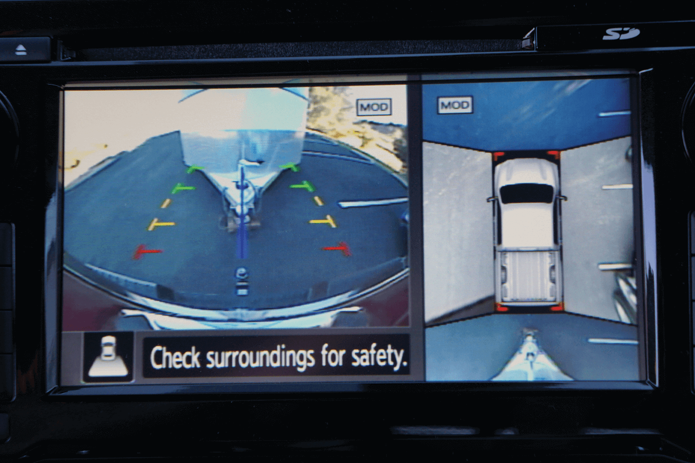 Nissan wanted to make trailer hookup a single-person operation, so they integrated guidelines into the rear-view camera to make it easy to line up the hitch. Once hooked up, pressing a sequence of buttons on the key fob will run a light test, cycling through parking lights, brake lights and turn signals. All that’s missing is a set of mechanical hands to connect the safety chains. We took the Titan XD for a test-tow with a two-horse trailer that weighs around 5,500 pounds with horse and riding gear loaded. We wanted to see how easy it really was to hook up without help, so we used the rear-view camera to back up to the trailer. It took us a couple of tries—when the sun is shining from the side, it can be difficult to see the top of the hitch ball—but we were able to hook up without assistance, and the light-test feature worked like a charm.