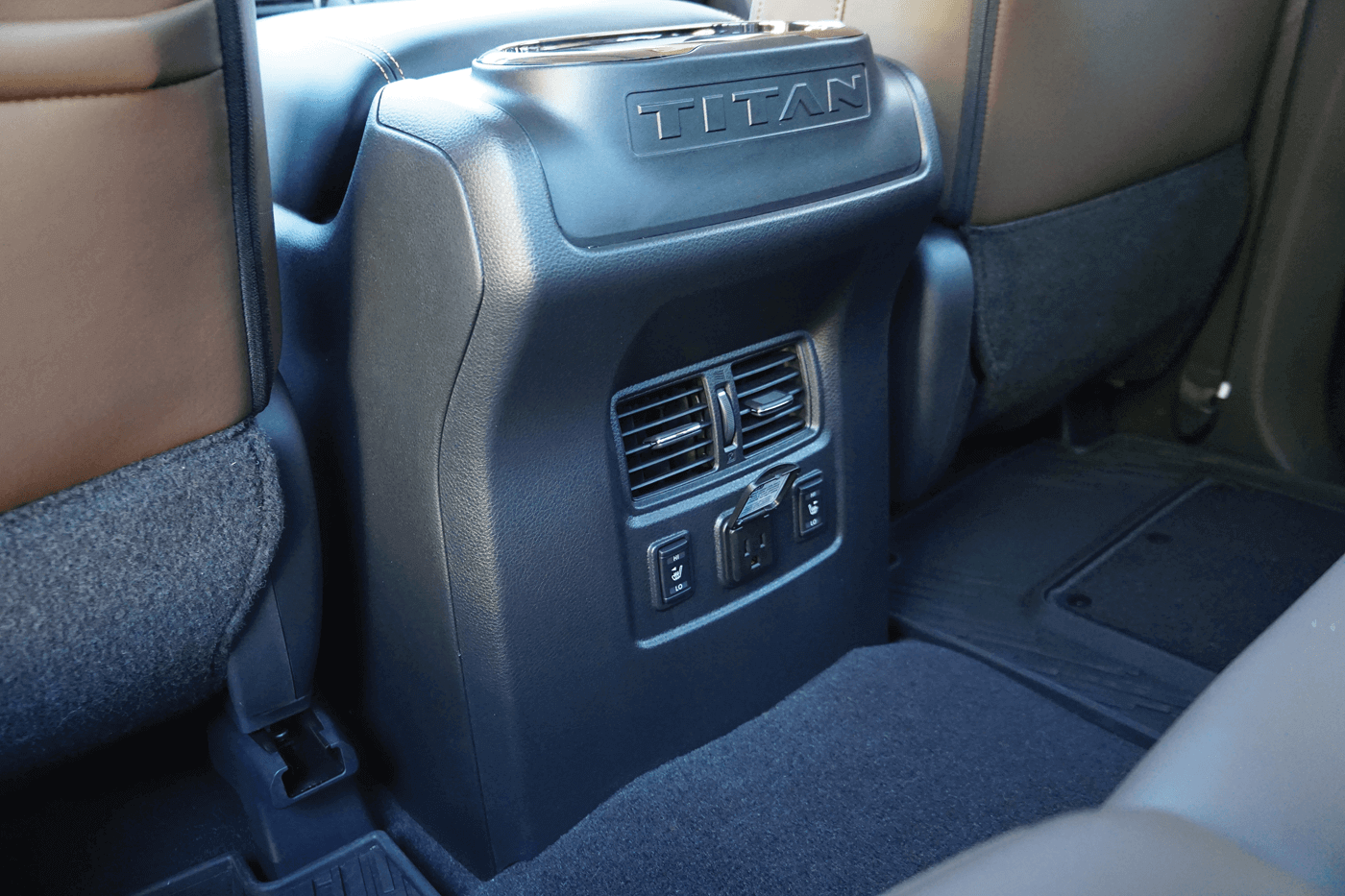 For the few of you who might have driven the old Titan, the cab will seem like a familiar place. The new truck’s interior uses the same basic layout, but Nissan has used better-quality materials and trim pieces. The base-model truck is still pretty sparse, but mid-level models are far more attractive and the top-of-the-line Platinum Reserve model is downright posh. Nissan has moved the transmission shifter to the steering column, which frees up storage space; too bad the shifter blocks the view of the air conditioning controls when it’s in Drive. All Titan XDs come with a family-friendly four-door crew cab, and the options list includes features you’d expect to find on a luxury sedan: leather interior, dual-zone automatic climate control, a power-adjustable steering column and heated and cooled front seats.