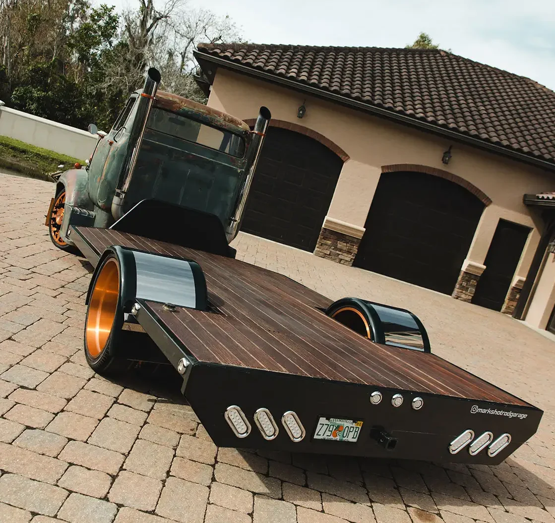 Since Mark has finished putting his own personal spin on his C750, he has only managed to display it at local auto events due to time restraints. He does want to make his way outside of the state of Florida wish his new ride in 2024, so keep your eyes peeled for his menacing flatbed Ford while out at shows this season. This creation is sure to turn some heads as well as take home a few trophies in the process. Folks love to see something different, and this ’54 COE model is just that. From the classic, patina-clad cab to the modernized wheels and exhaust stacks and one-off bumper design, this truck checks all the boxes, which will bode well for it on judging scorecards this year. The original builder engineered the overhaul wonderfully, and Mark has every intention to further capitalize on the excellent starting point he was given to work with.