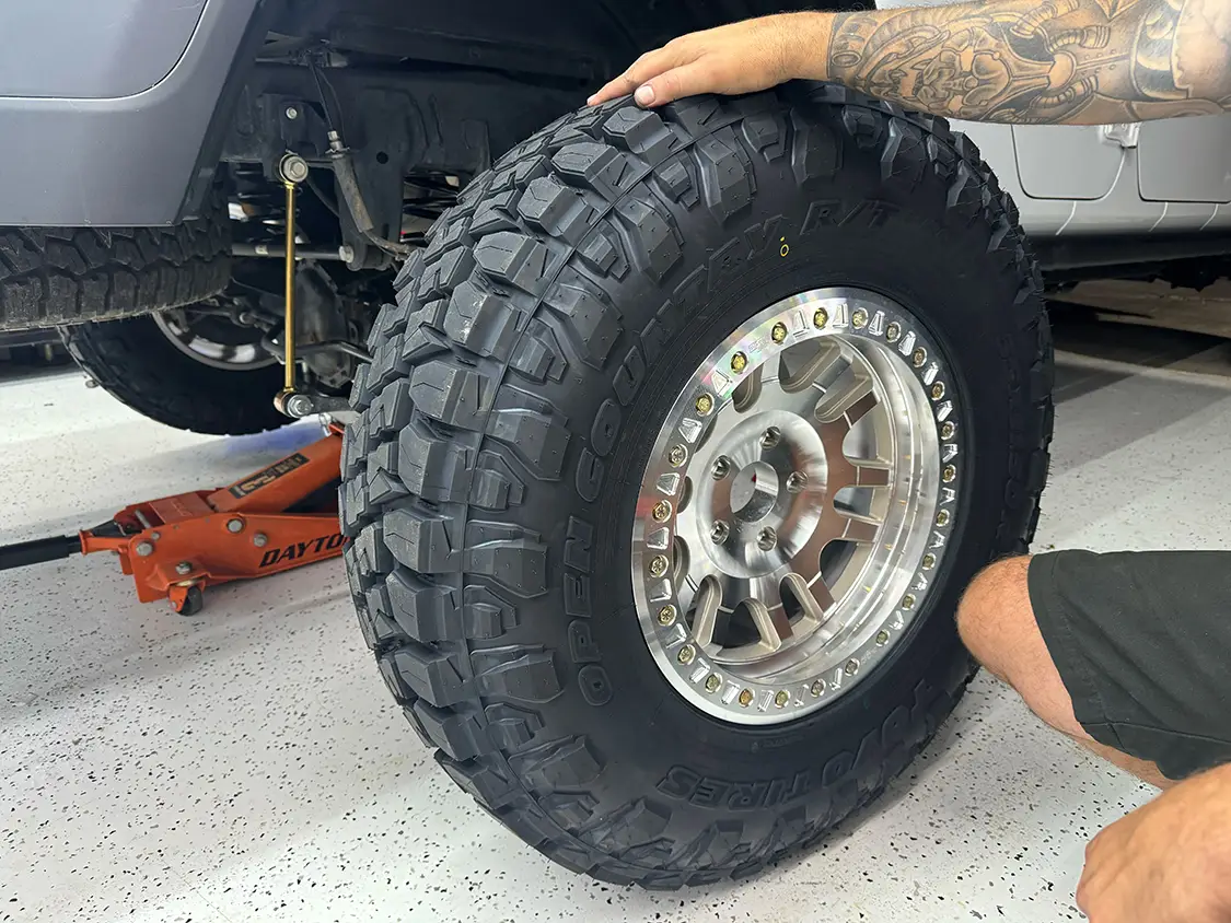 With the suspension handled, we turned our attention to wheels and tires. We picked a set of 17×9 Dirty Life Canyon Race Beadlocks. True beadlocks—not just for looks. These wheels are made for drivers who actually use their rides, not just park them at shows. We wrapped them in 35×11.50×17 Toyo Open Country R/Ts. These tires strike a great balance as they offer a solid grip off-road, are stable on the highway, and don’t drone on the street like a mud tire.