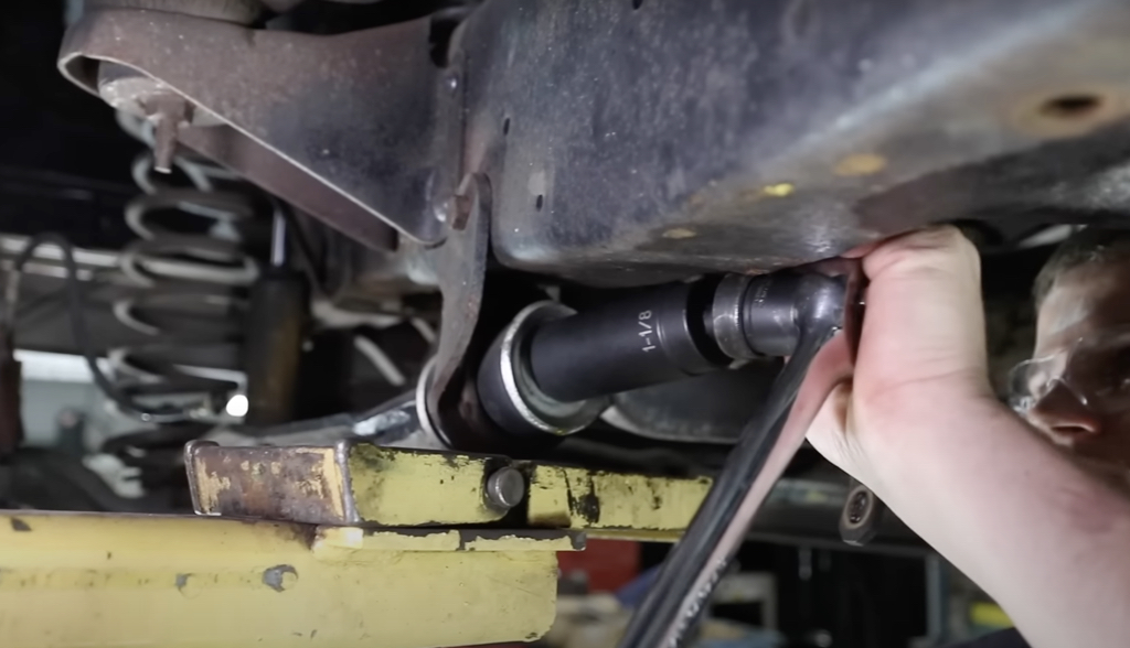 Next to come off was the sway bar and steering link. This freed up the frontend so we could get it all out in one shot.