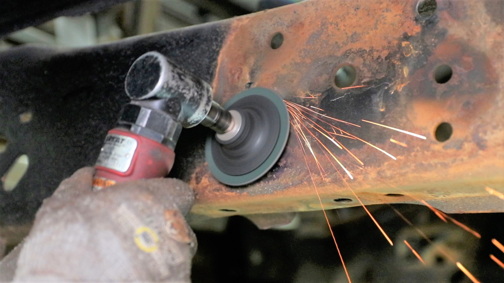 Some simple cuts to make extra room for the new parts were made before we cleaned and painted the front frame rails.