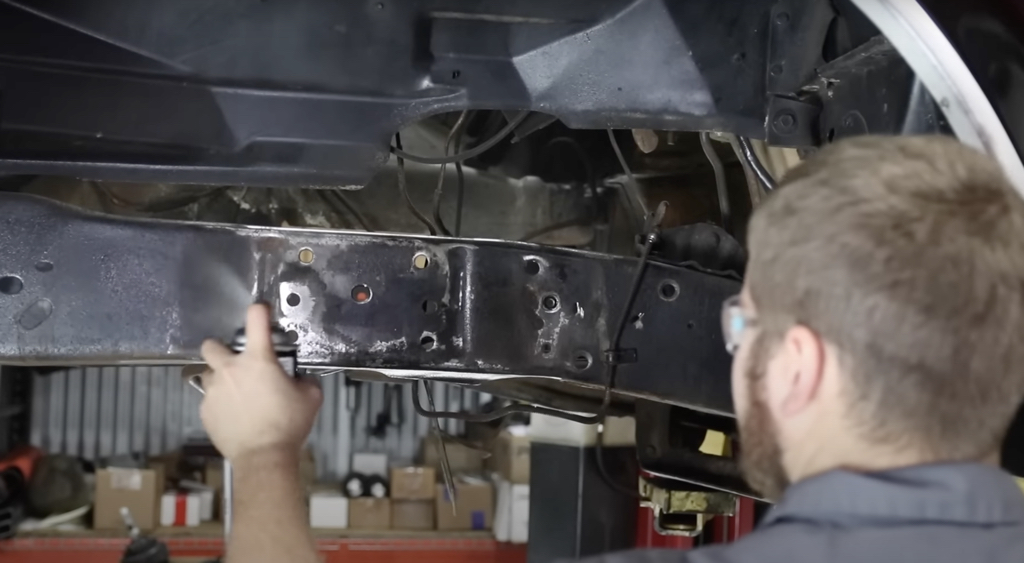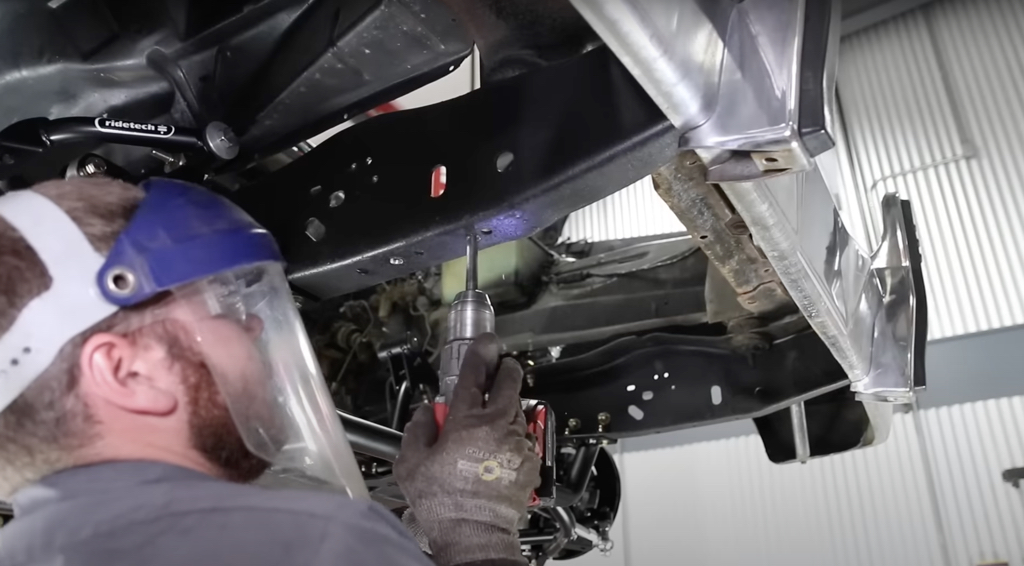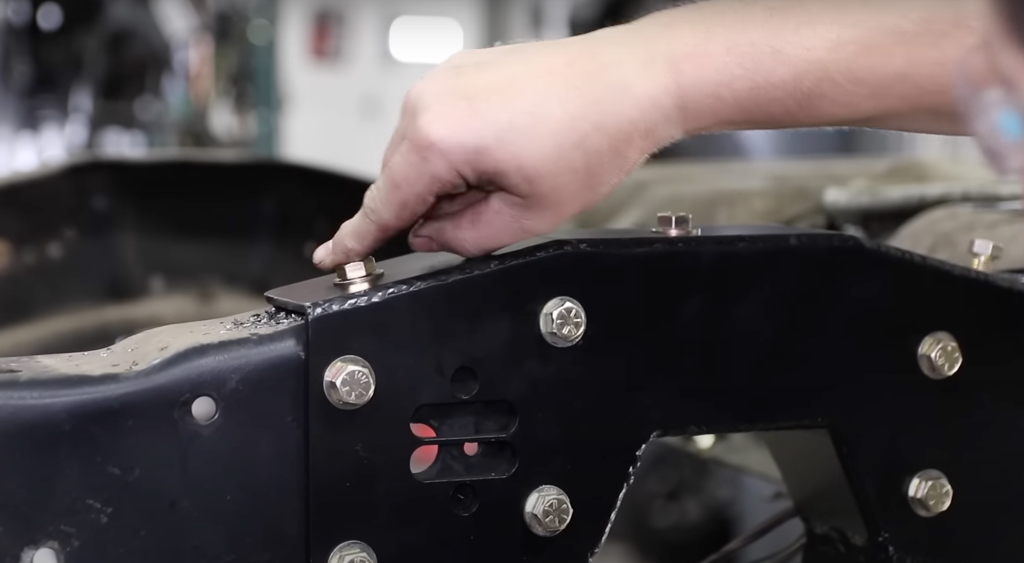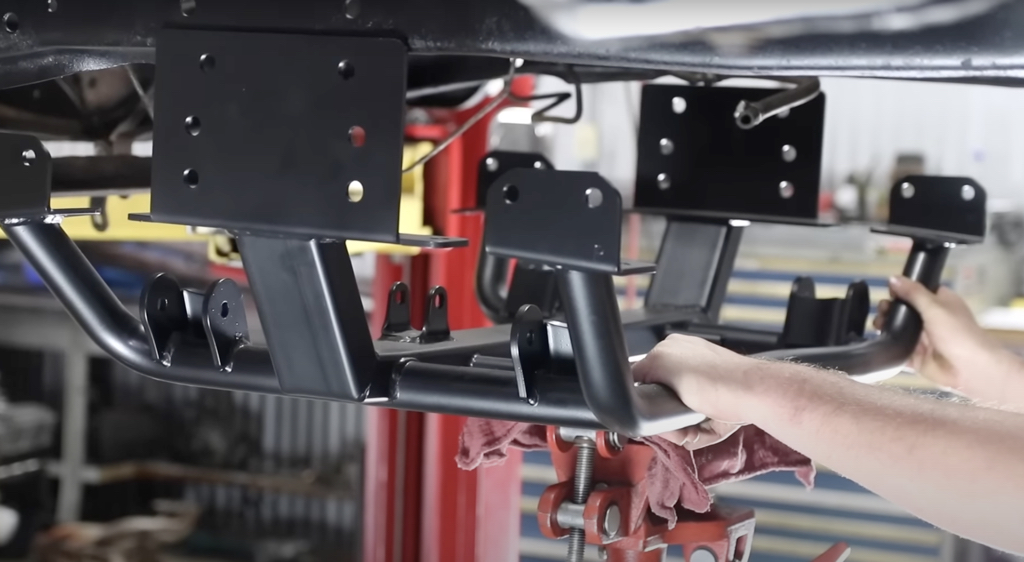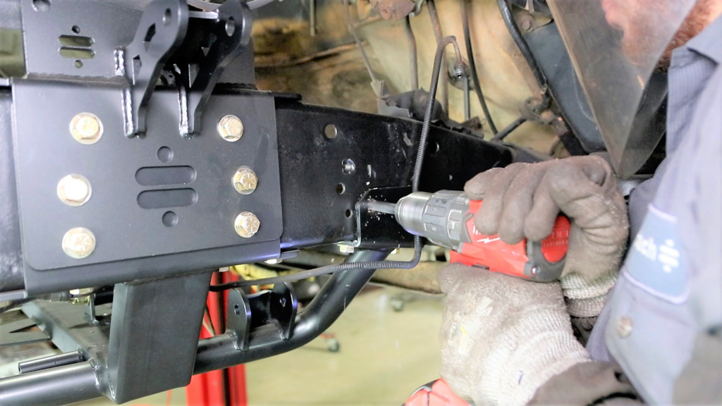 Next up was the new front crossmember. A few holes needed to be drilled in the frame and the included hardware bolted it all in place.