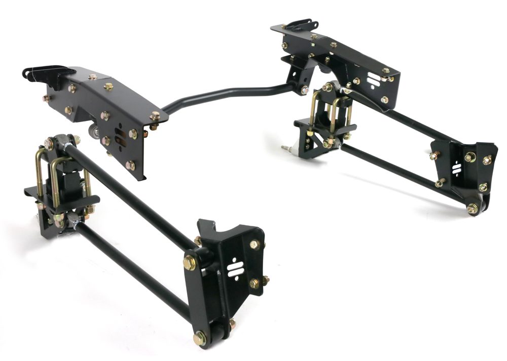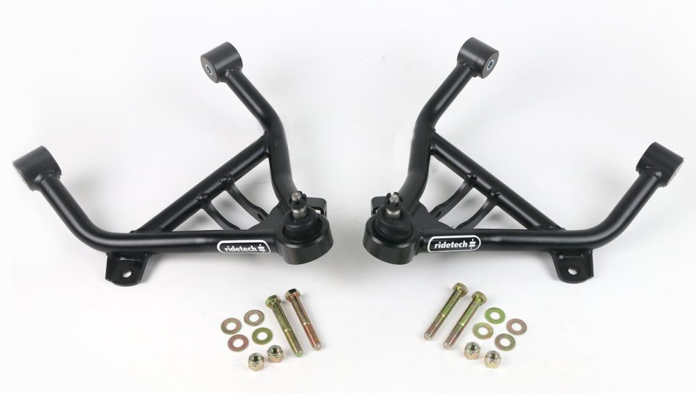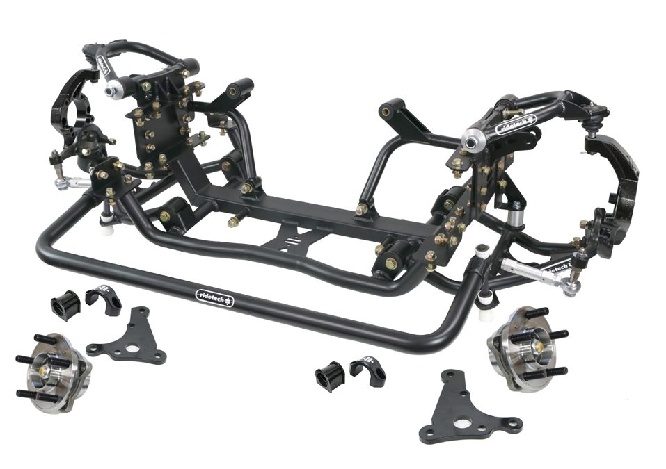 The rear 4-link suspension kit from Ridetech includes a parallel 4-link with Panhard and C-notch. It works with coilover or Shockwave airbags.