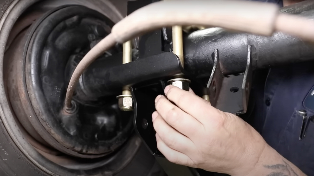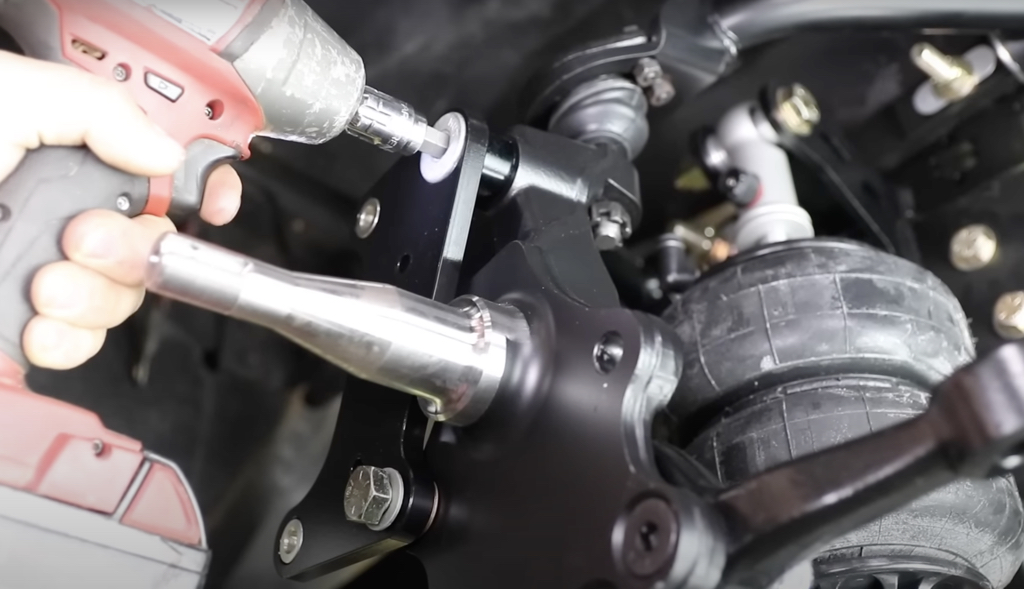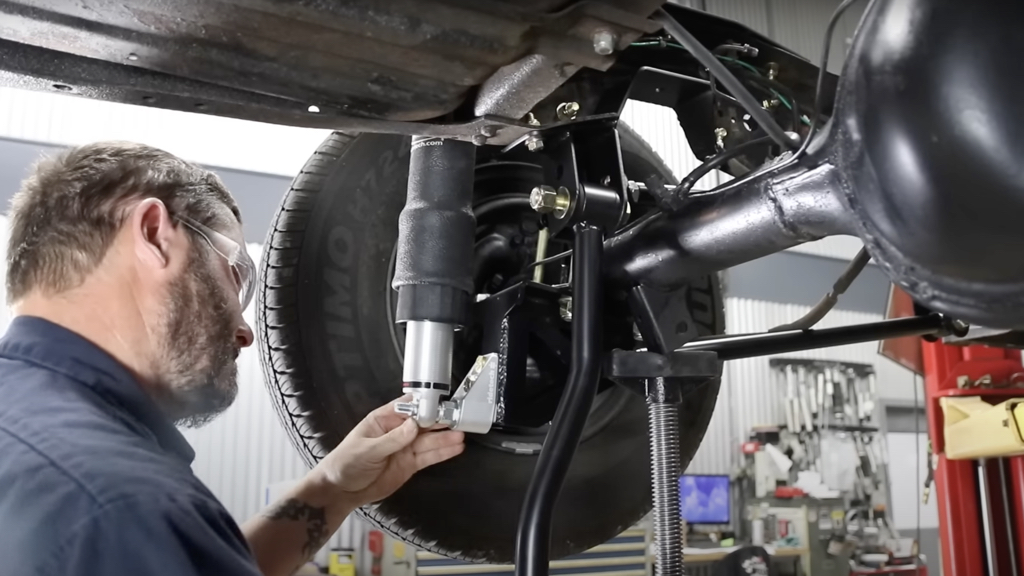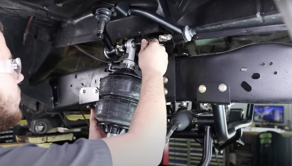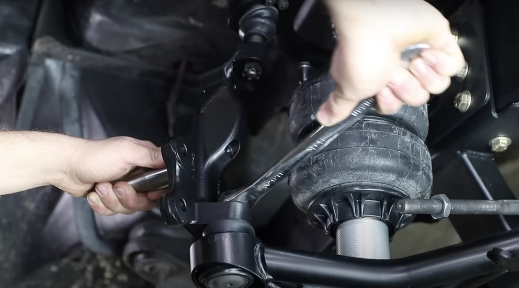 We chose to install airbags on this truck, but you can pick coilovers as well. The process is the same; we just bolted in the option we chose.