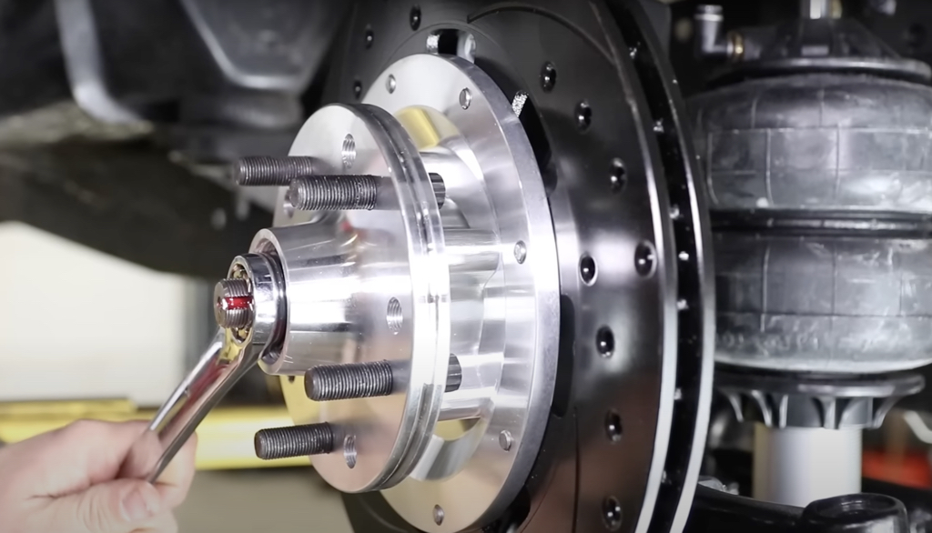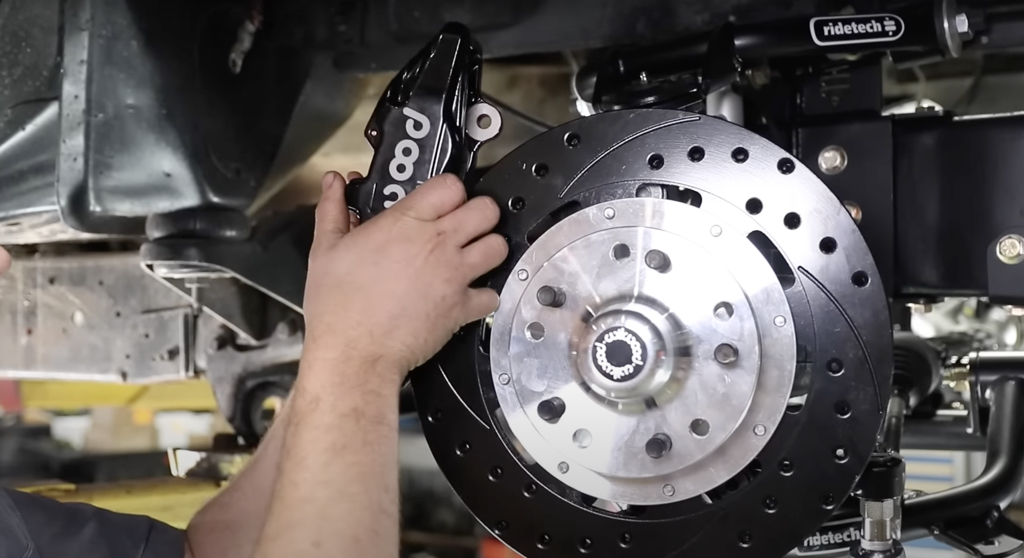 This kit utilizes Ridetech’s tall “pin” spindle, which uses “AFX brake kits.” Many brake kits (including Wilwood) are dual-drilled for a 5×4.5- or 5×4.75-inch lug pattern.