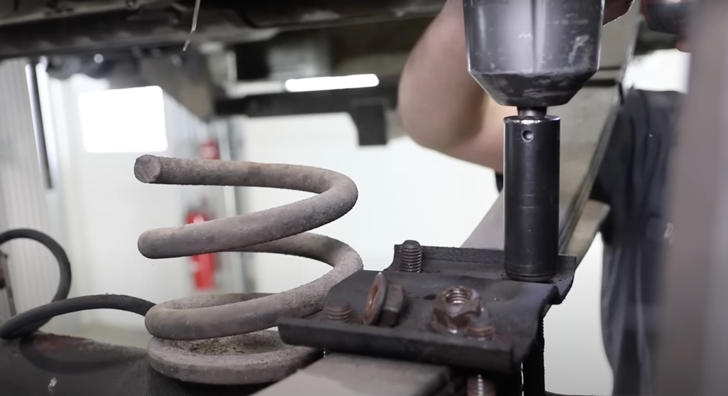 The leaf springs were the first part of the rear suspension we needed to remove.