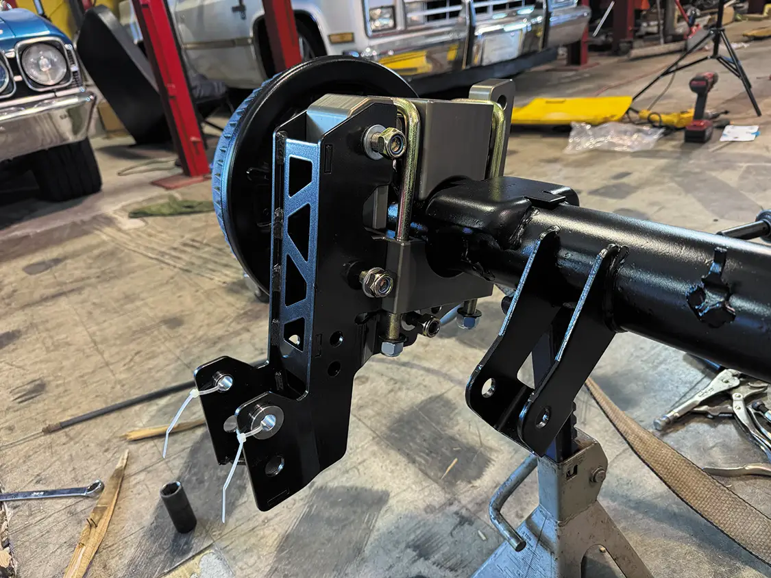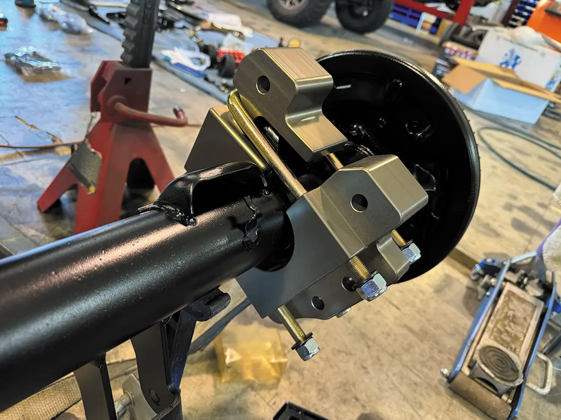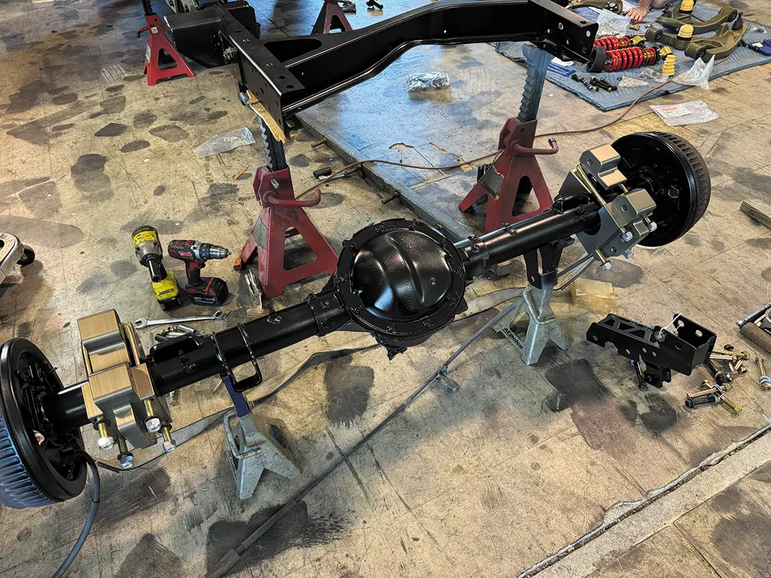 With everything in place, we tightened all the bolts and slid the axle back under the truck frame.