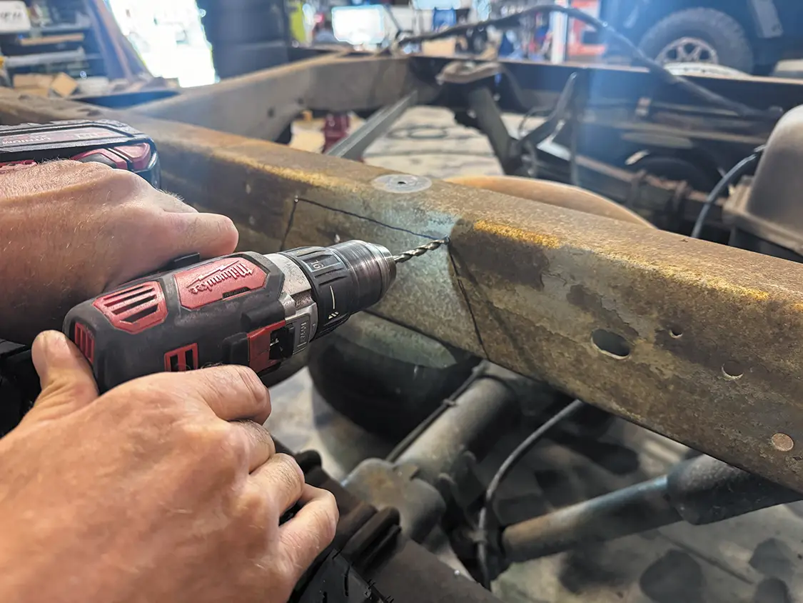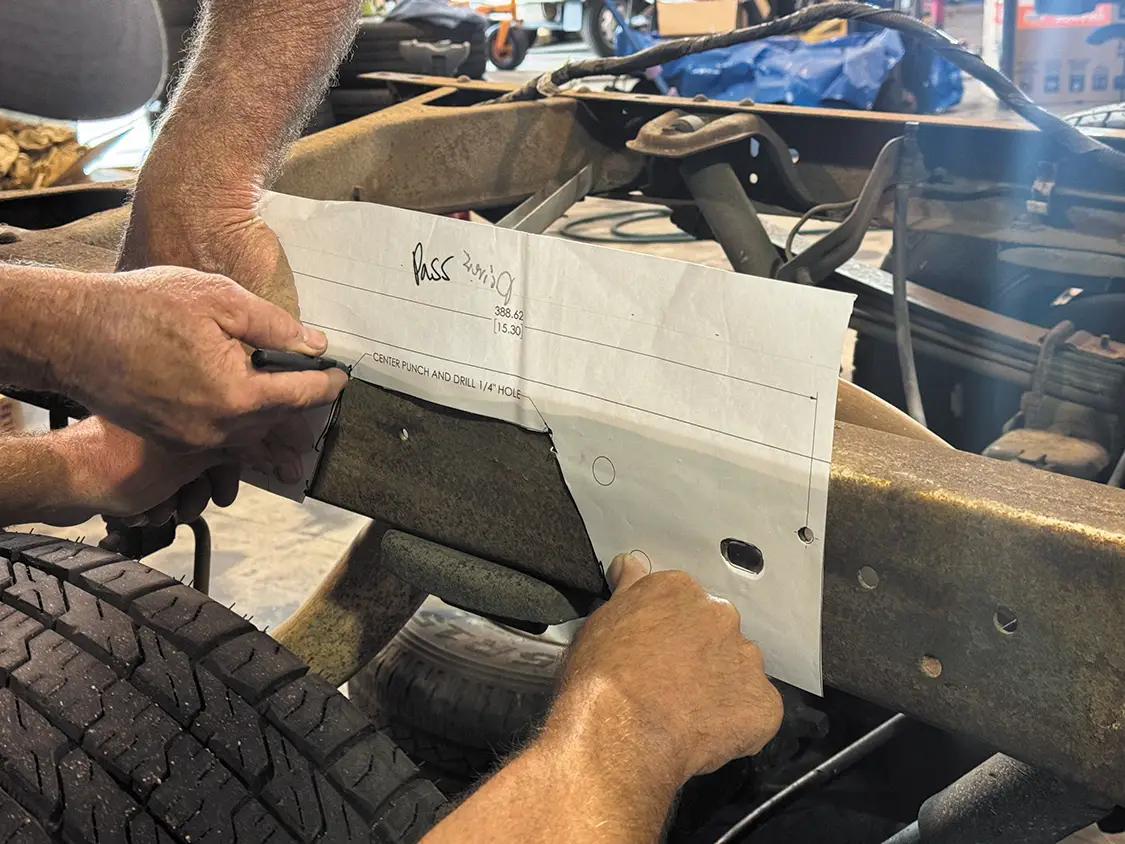 Using the provided template, we marked the rear step notch location and drilled holes in each corner.
