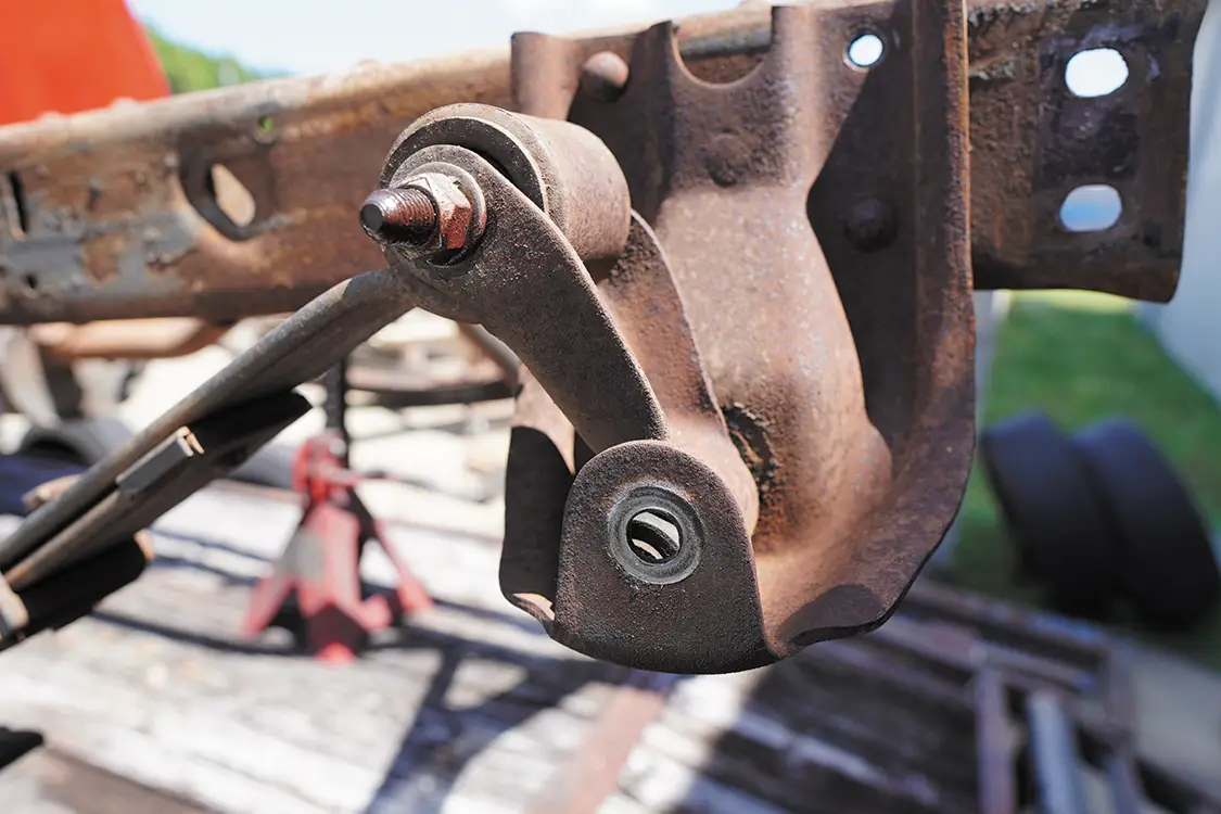 It was time to unbolt the factory leaf springs and pitch them. We won’t need these in the future.