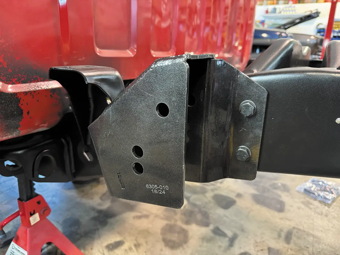 Moving on, we again used the provided template to mark the locations for the front 4-link brackets. Followed by drilling the holes and bolting the bracket up.