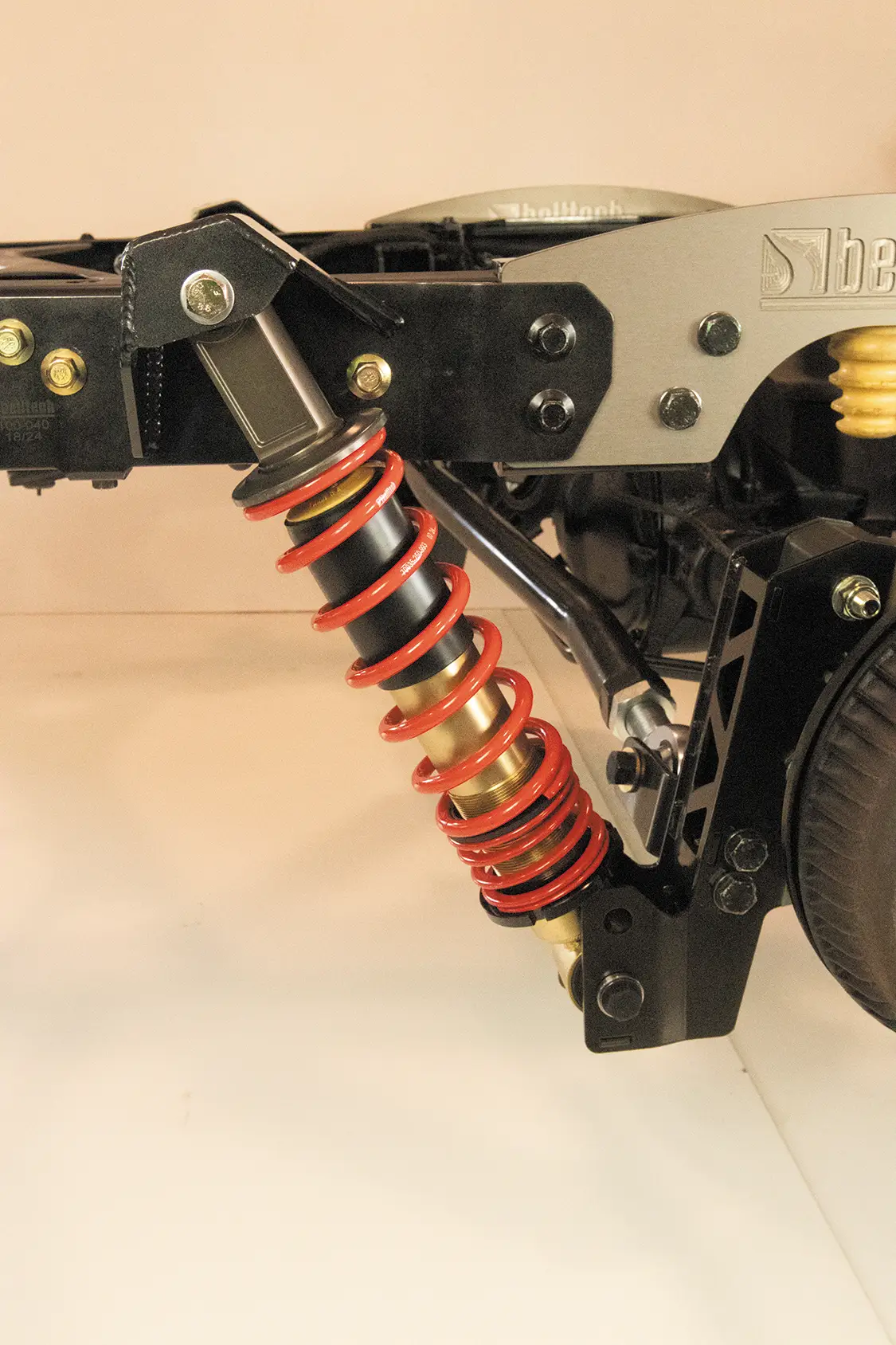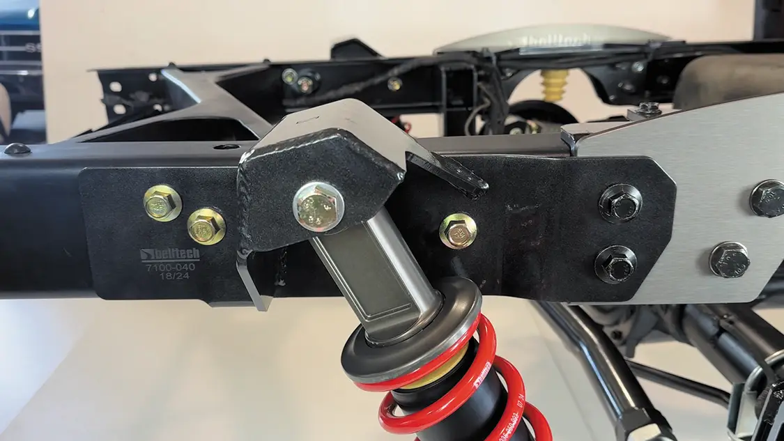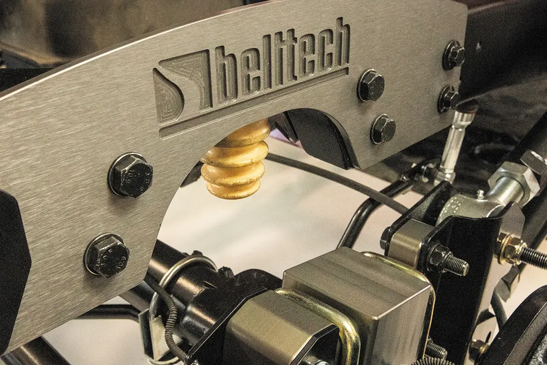 Belltech’s rear coilovers are mounted at a slight angle for added stability and tuned handling. The parallel 4-link setup ties into a beefed-up C-notch and includes a Panhard bar that connects directly to the notch brackets. Every piece of this system is well-built and well-engineered. It’s clear Belltech put serious R&D into this kit, and we can’t recommend it enough if you’re serious about how your OBS handles the road.
