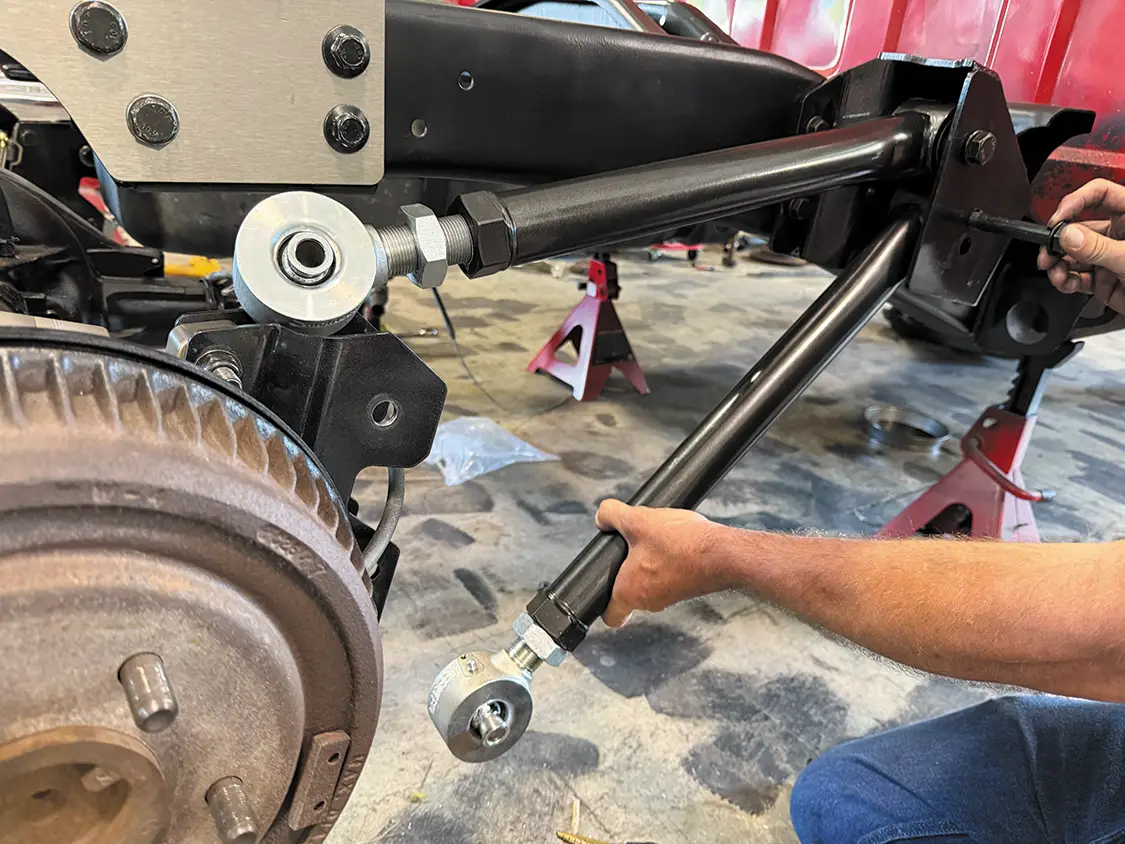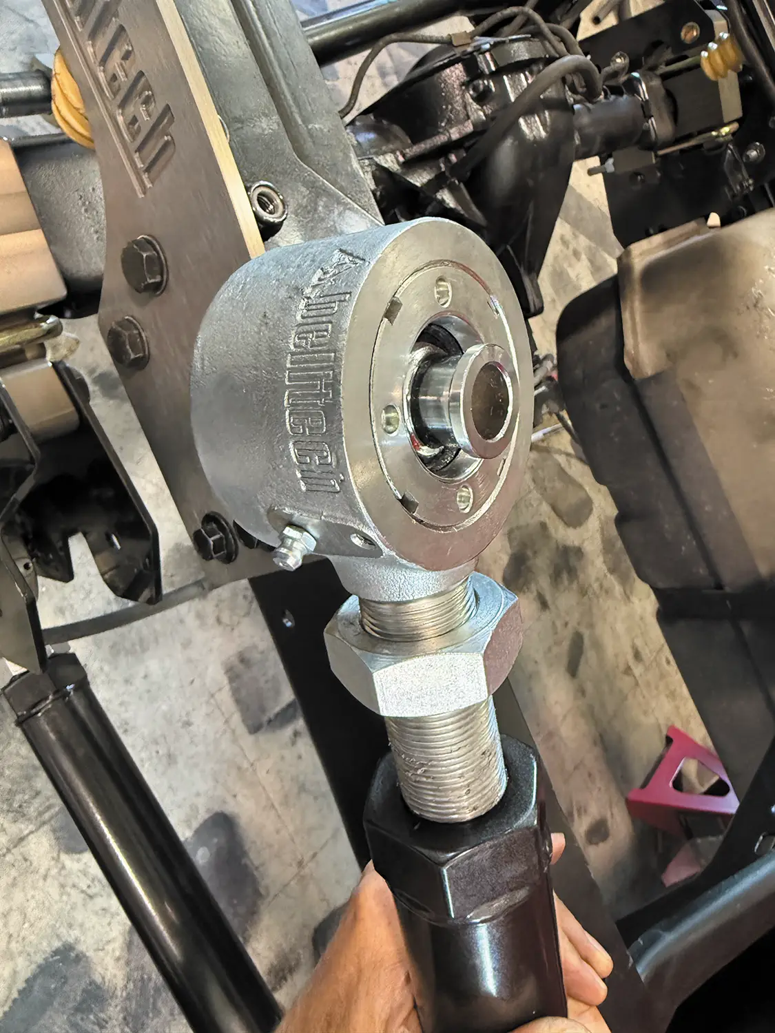 Followed by threading the heim joints into the link bars and mounting the link bars to the truck.