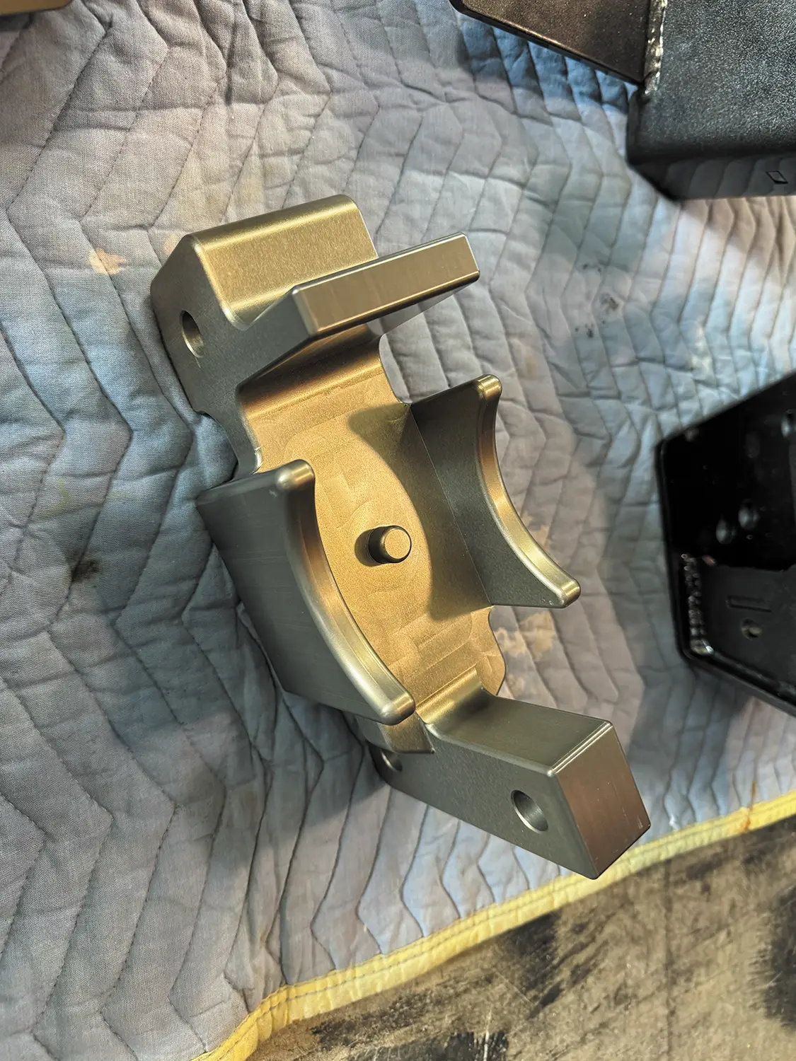 Now we could move to the axle brackets, starting with the cast brackets that wrap the axle.Next were the 4-link brackets that connect the 4-link bars to the axle.The lower coilover bracket mount was next to be bolted to the axle.