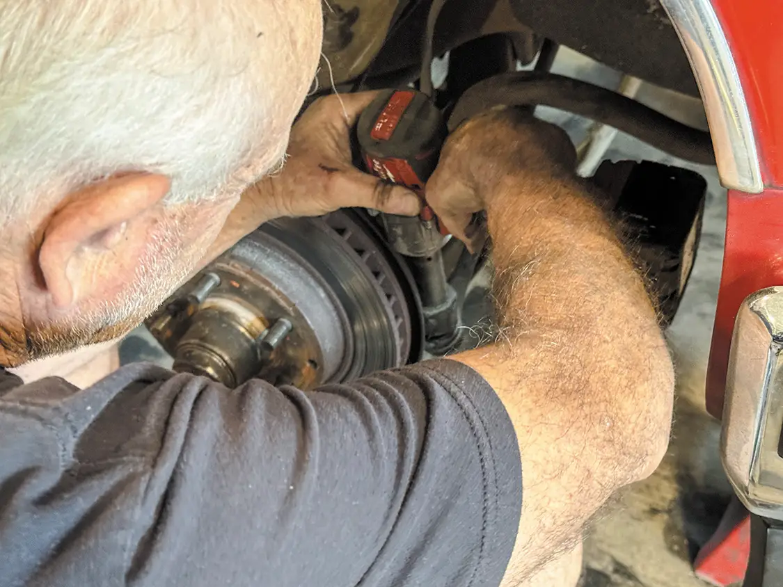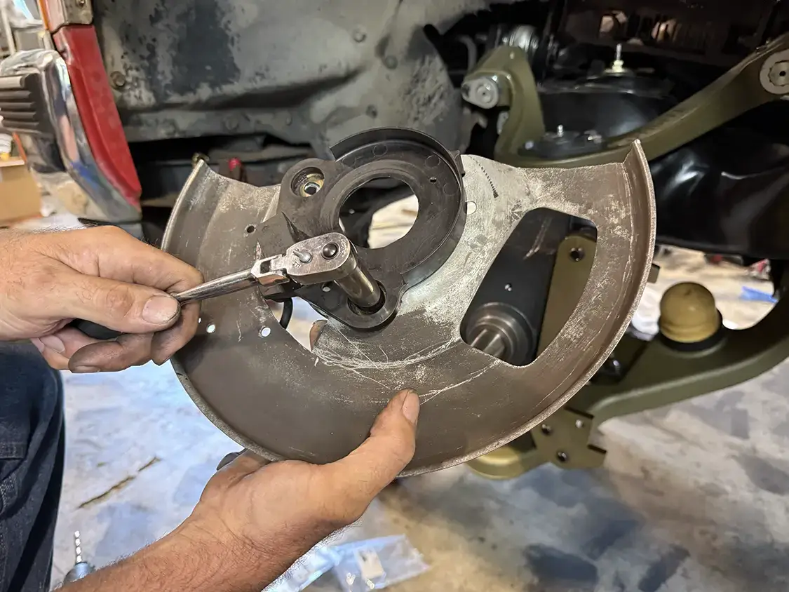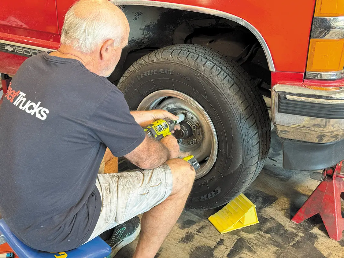 With the truck on jack stands we could remove the front wheels and put them in storage for now.
