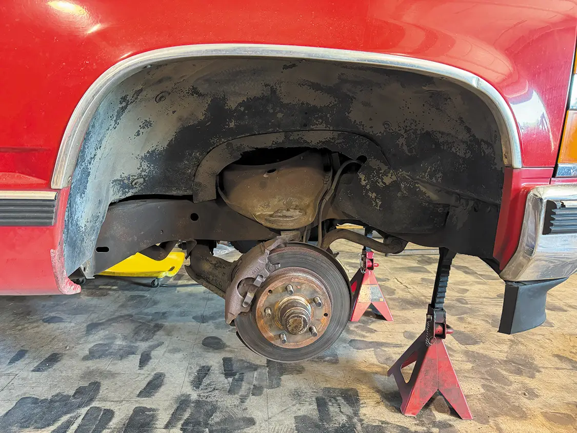The nearly 30-year-old suspension looks beat down and worn out but this part of the truck will look brand new when we are done with it.