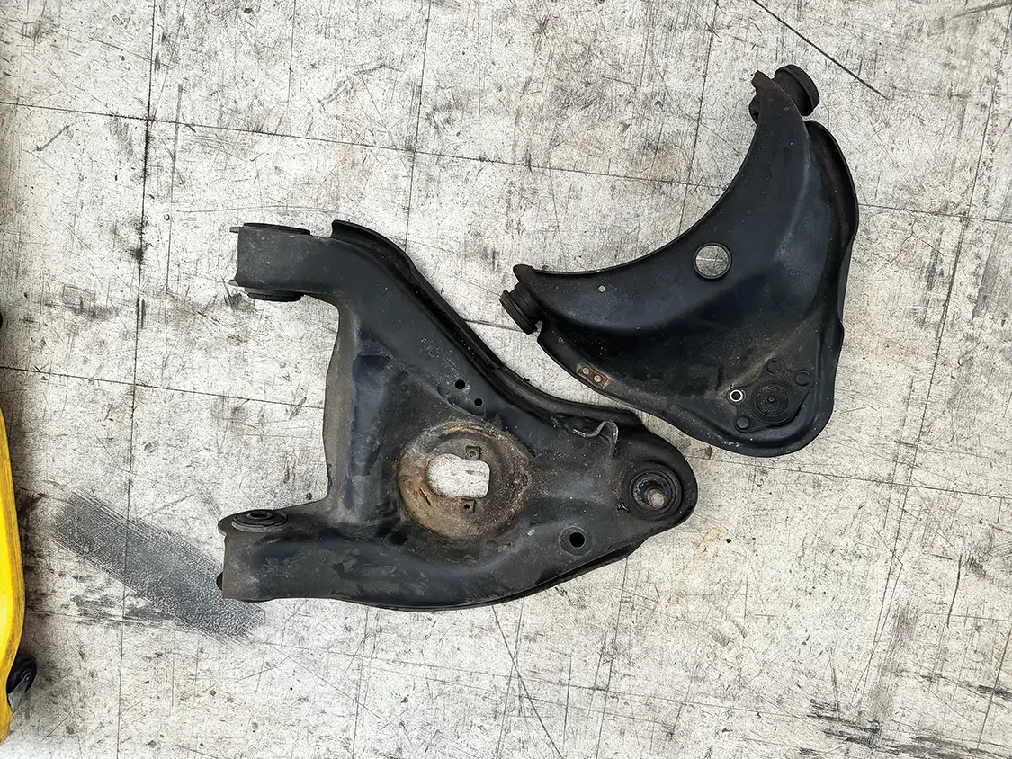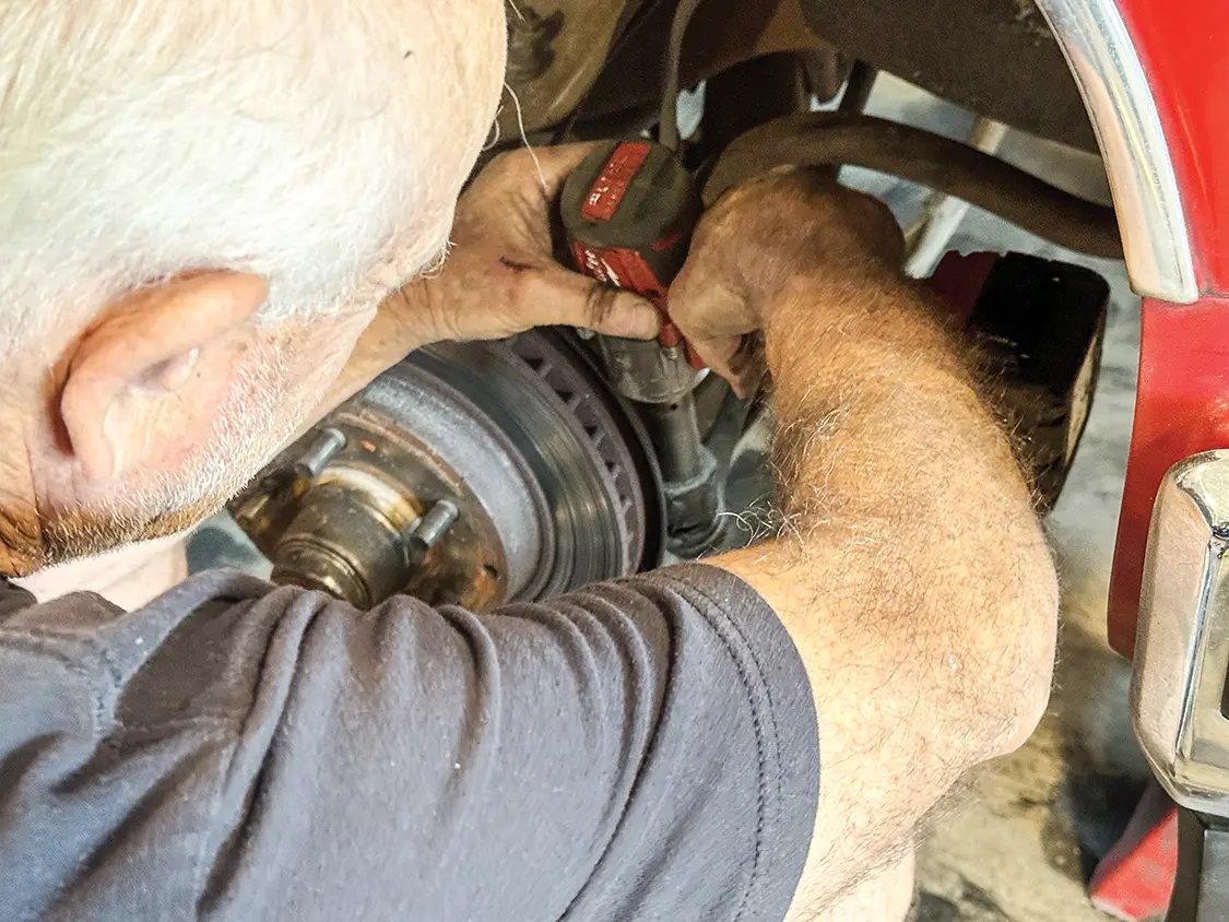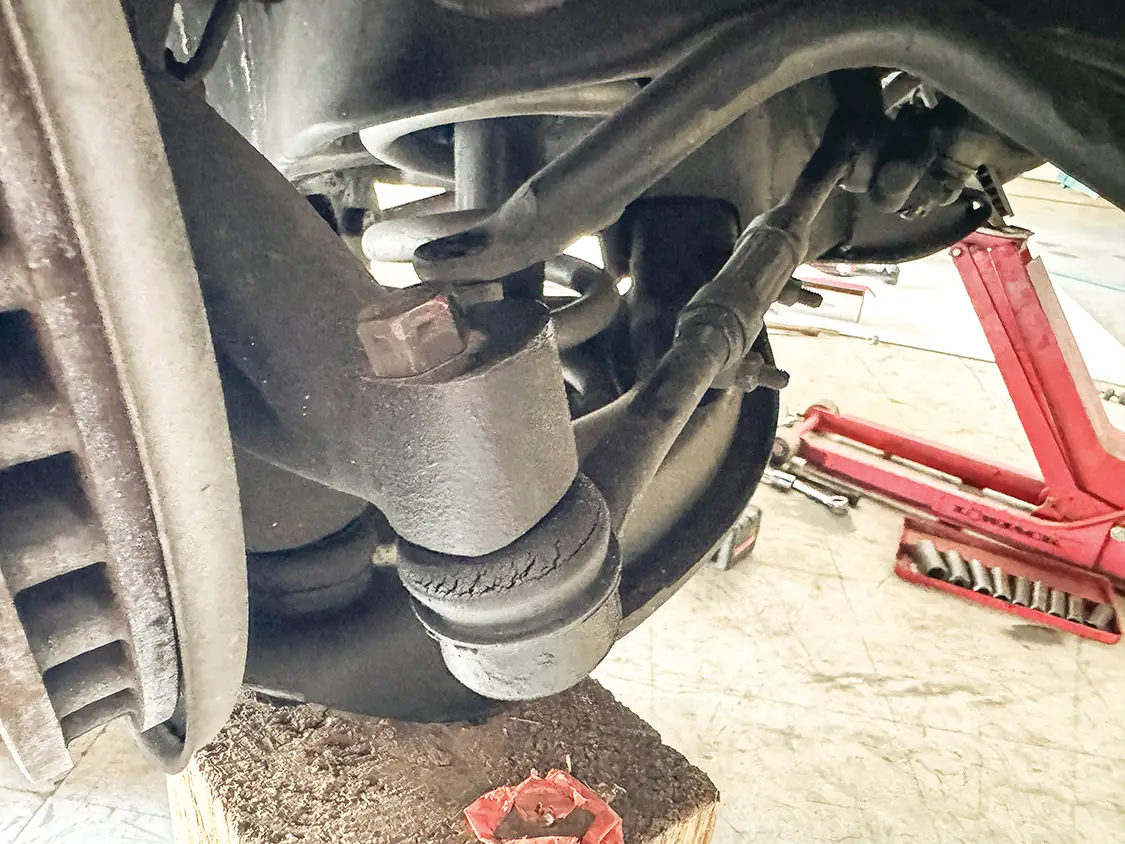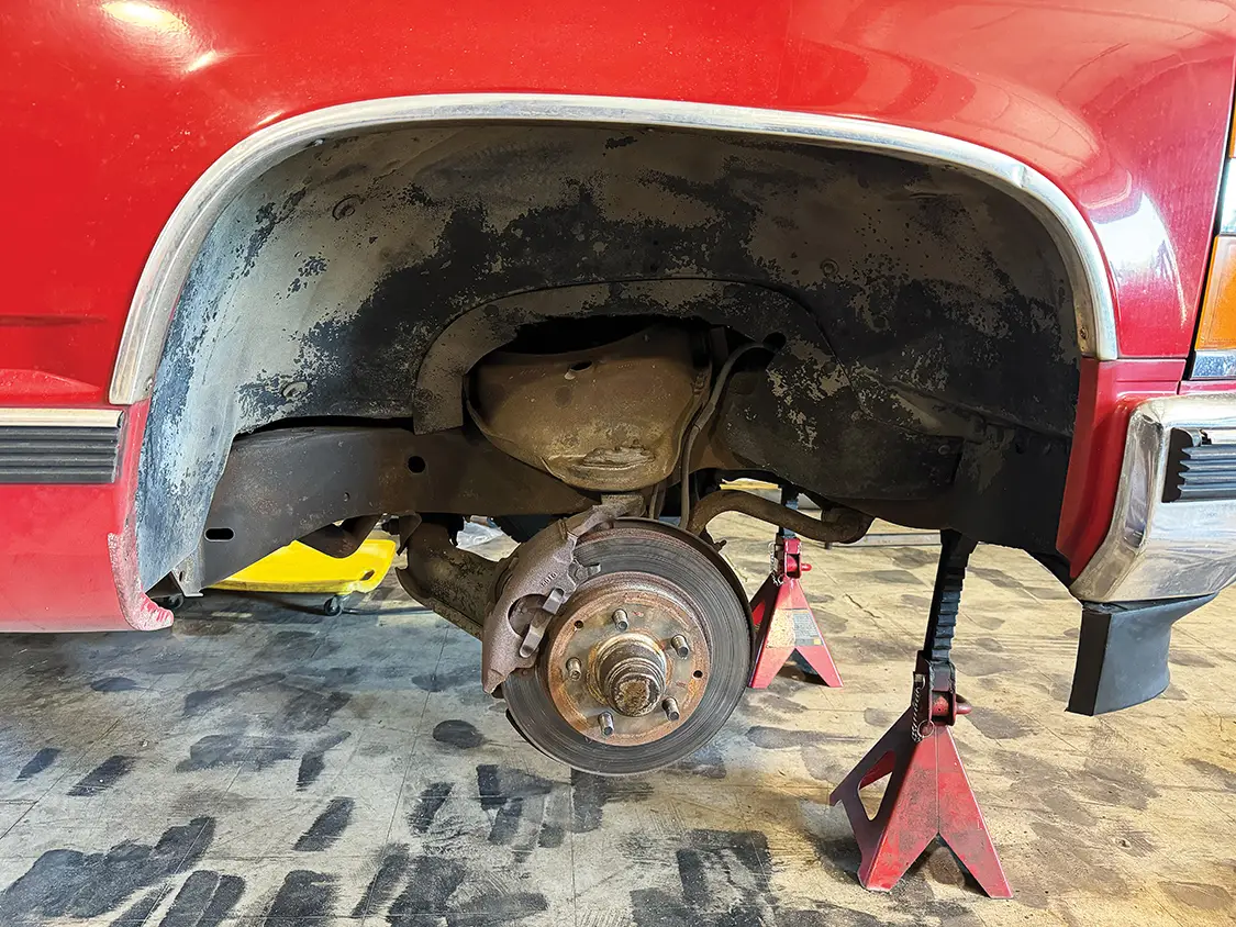 With the truck on jack stands, we could remove the front wheels and put them in storage for now.The nearly 30-year-old suspension looks beat down and worn out, but this part of the truck will look brand new when we are done with it.