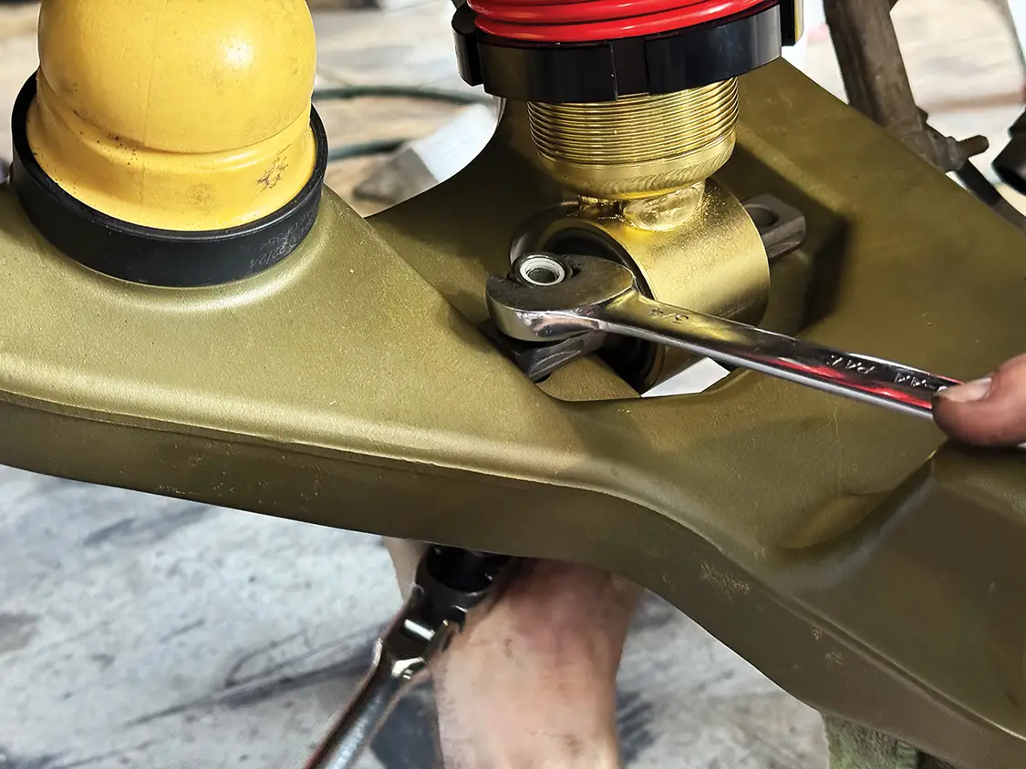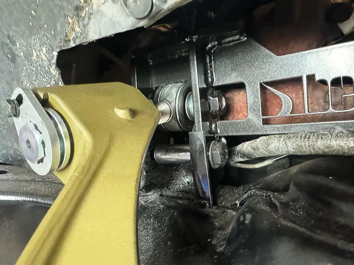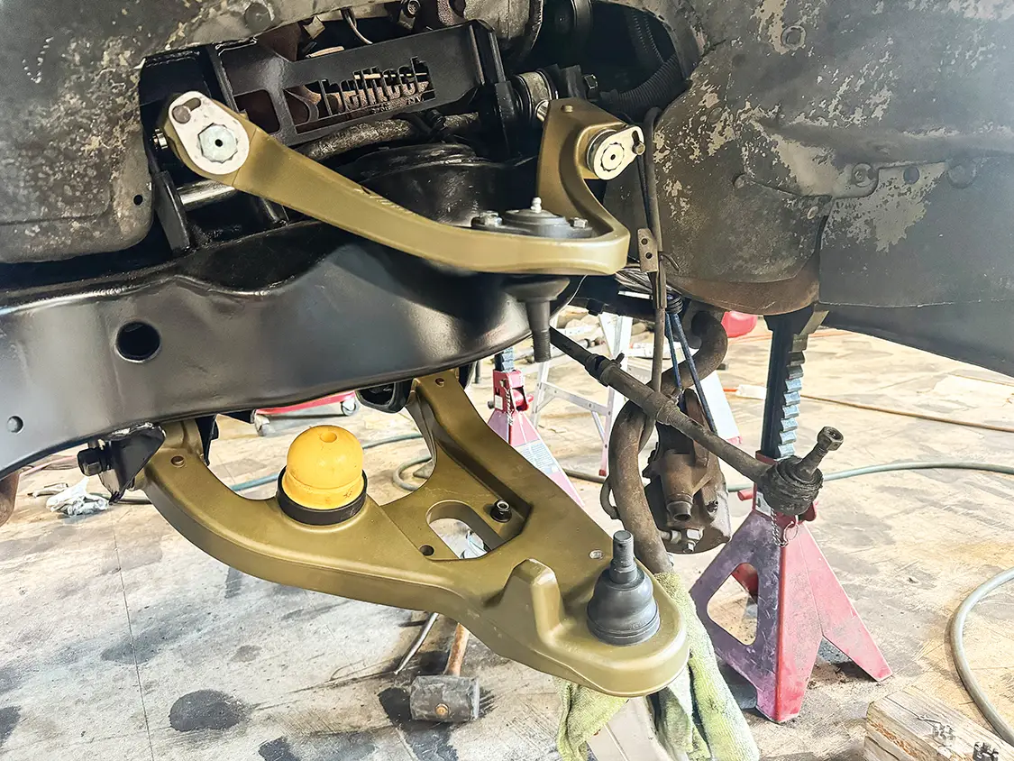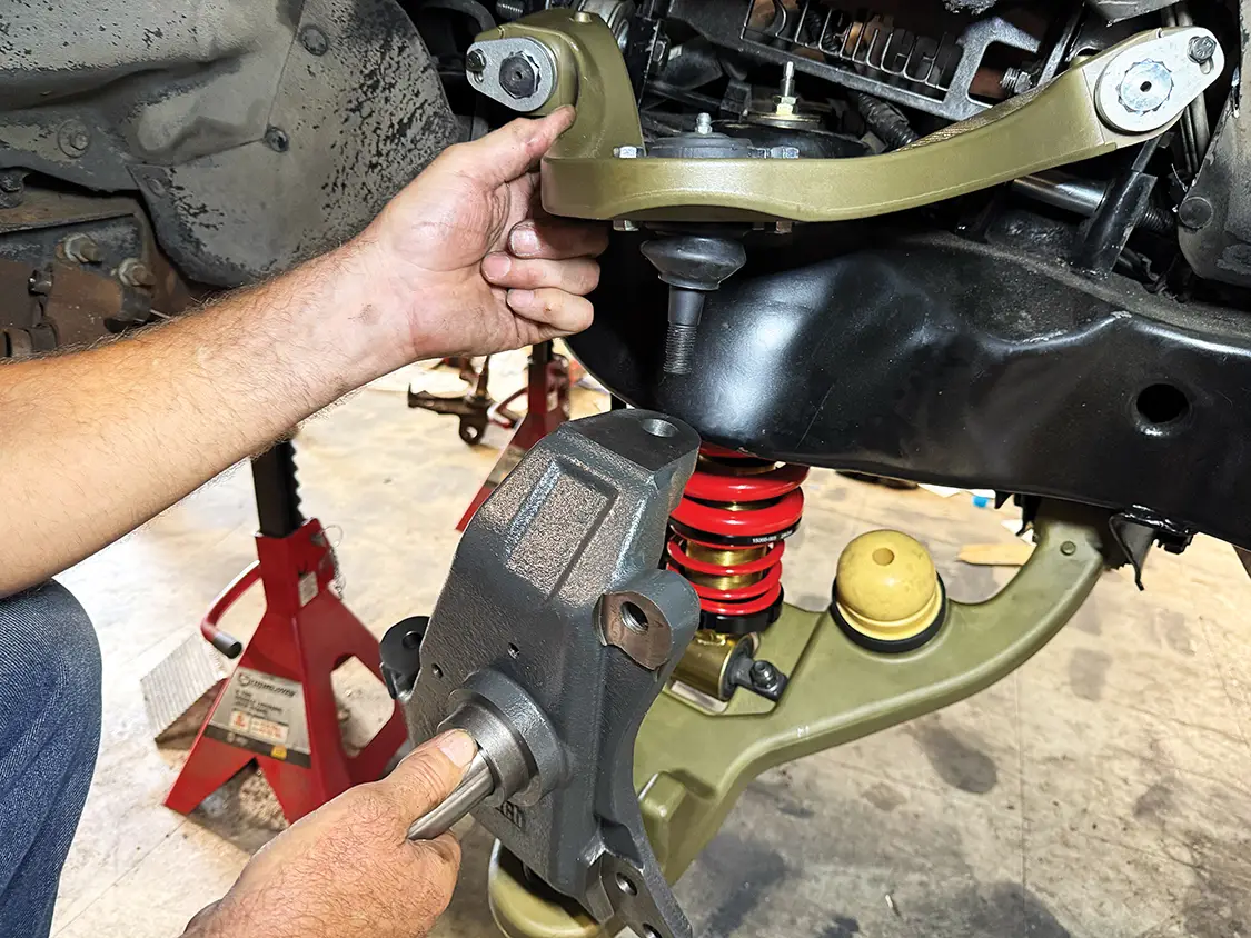 The coilovers were mounted to the top shock mount. We will adjust the spring height once we have the installation complete.We then bolted the bottom of the coilover to the lower control arms using the provided hardware.Connecting the top of the spindle to the upper control arm completed the hard part of the front install.Just check out how clean this front kit is. It’s well-built, engineered for performance, and coated to last.