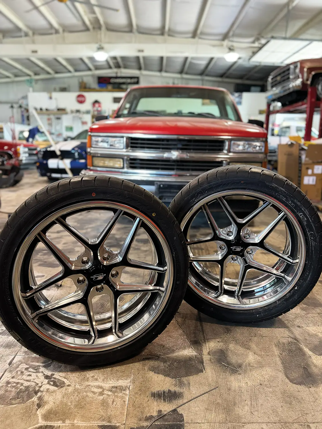We went with 20-inch Billet Specialties TEC 5 wheels, 8.5 inches wide up front and 10s in the back, and wrapped them in Atturo AZ850 ultra-high-performance tires. These things grip like crazy and handle just as good as they look. The offset is dead-on for this body style, and the polished finish makes the whole build pop.