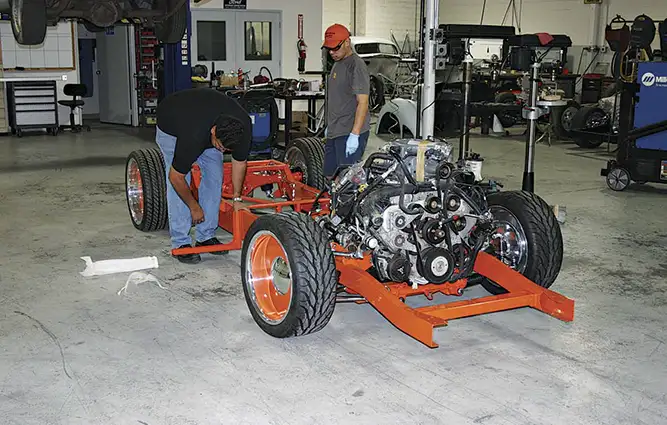 Next, Steve’s old friend Mark Campbell, of Street & Performance in Mena, Arkansas, took on the task of converting 38 pounds of wiring harness and computer into an 8-pound harness that would make the engine and trans function. The rat’s nest of wire was converted into a plug-and-play kit complete with paper tags and instructions. For fuel to match the fire, Rick’s Tanks of El Paso, Texas was enlisted to fabricate a stainless steel fuel tank, which included the high-volume electric fuel pump matched to Aeromotive filters and a custom set of fuel rails that rest on the direct fuel injectors—another first.