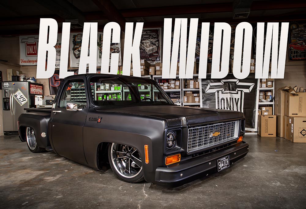 Dino Battilana is a certified Chevy truck specialist, which is exactly what his show Dino’s Git Down caters to every year in Phoenix. While he gives GM pickup enthusiasts a place to gather every year, he also makes sure to keep his own garage filled with Chevy pickups of his own with the latest of his projects being this short, dark and handsome ’73 Squarebody that he affectionately refers to as the Black Widow.