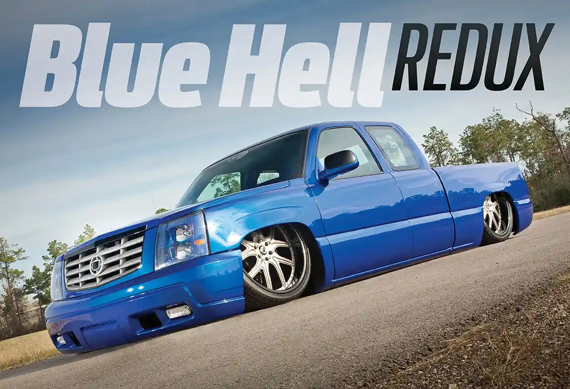 NEGATIVE CAMBER CLUB MEMBER TROY HAMILTON IS NO STRANGER TO CUSTOM TRUCKS. He’s been building trucks since 1987 and he’s had a few. This time around Troy got this extra cab full-size Chevrolet Silverado, dubbed Blue Hell Redux, in trade. The rig was fully customized from the front end to the audio tunnel. It was originally built by IF Customs 10 years ago and was owned by Eric Dunaway. As the owner of Auto Perfection, Troy rebuilt this truck for the love of the lifestyle and also to promote his business.