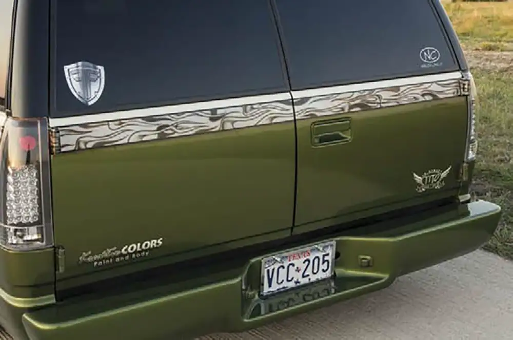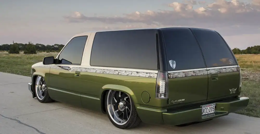 Turn back the calendar to the August 2008 issue of Street Trucks and Chas Nichols’ stunning ’96 Chevy C-1500 lying flat out across the cover. Basecoated in charcoal, smothered with gold flames and sitting flat on the tarmac over B.A.D. billets, Chas’ truck pushed the custom envelope on every surface. As a proud member of Negative Camber, Chas has always rolled to shows with his extended truck club family. In 2009, as the Nichols clan began to grow, the cramped confines of the standard cab were becoming more and more challenging. It was clearly time for something with a backseat for the kiddos and more cargo room for the family’s stuff. A two-door Tahoe seemed like the perfect solution, and a ’98 Tahoe surfaced with a 4/6 drop and 22s was the perfect blank canvas for Chas’ next build. Between family life, buying a new house and his job at Coca-Cola Bottling Co., the Tahoe build lost momentum and sat in the garage for two years.