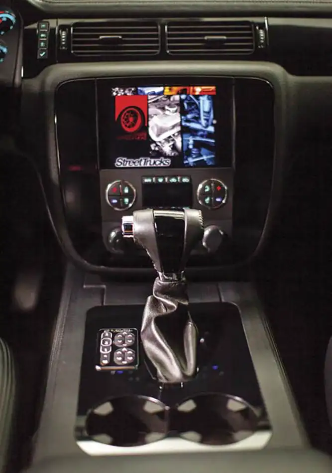 Travis loves the look of a clean white truck so he had Pristine Paint & Body lay down the gleaming DuPont White over the smoothed exterior. For the interior, he got help from Cato Custom Upholstery and Sculpt Garage. They combined their talents to create a very high-tech cabin. Building the system around a flush-mounted iPad mini and a custom center console running from the dash to the rear cab, Cato and Sculpt were able to pull off a very well-executed custom cabin interior and still keep things looking OE. Cato used black satin synthetic leather throughout, and even wrapped and stitched the dash. The duo also blended Focal components, JL subs and Alpine digital amps for a quality system worthy of even the pickiest audiophiles.