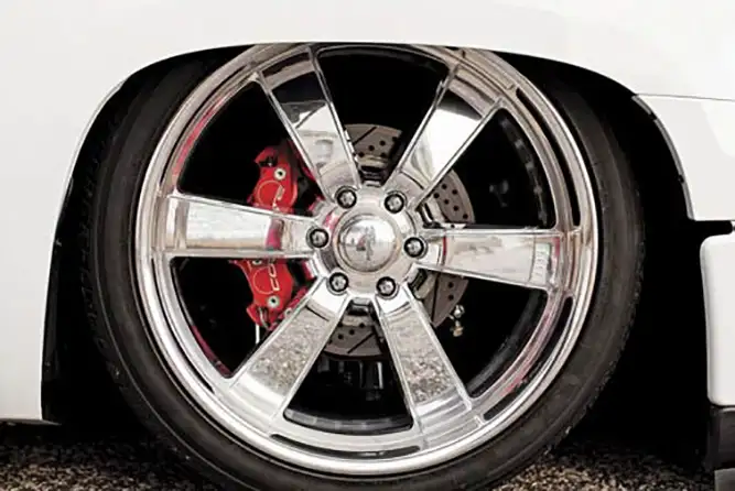 For suspension, Travis ordered AccuAir controls, MMW arms, McGaughys drop spindles and an Nfamus 3-link. Once the truck was ready to lay out over the perfectly polished 24×10 Raceline Speedster 6 wheels wrapped with Nitto 420s rubber, it was time to see what all of their hard work looked like on the ground.