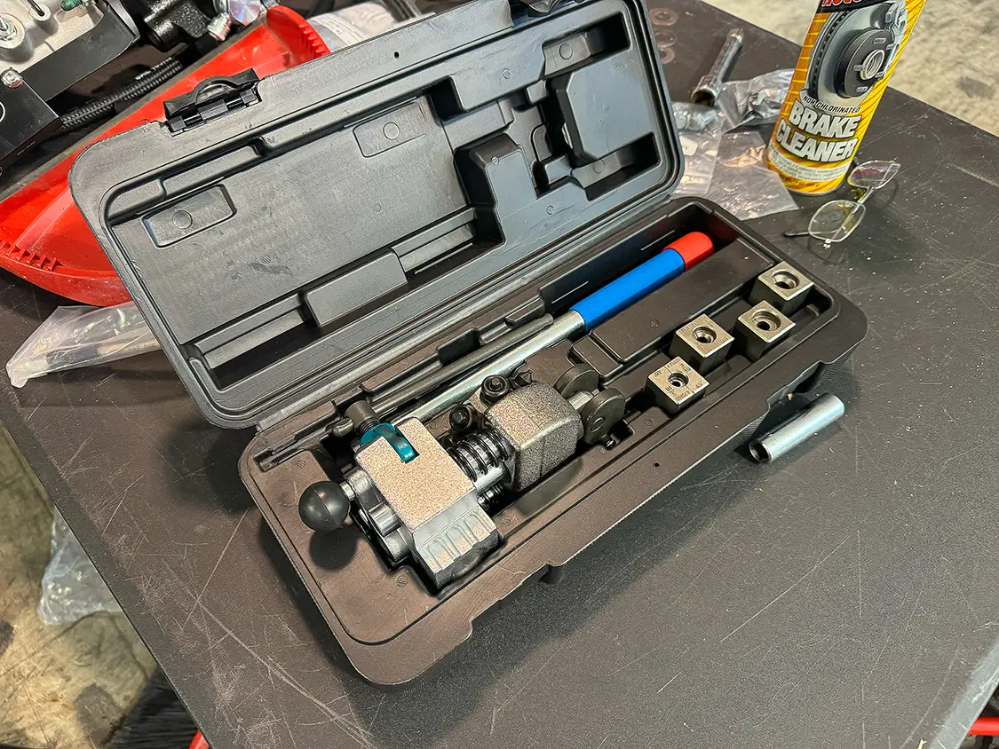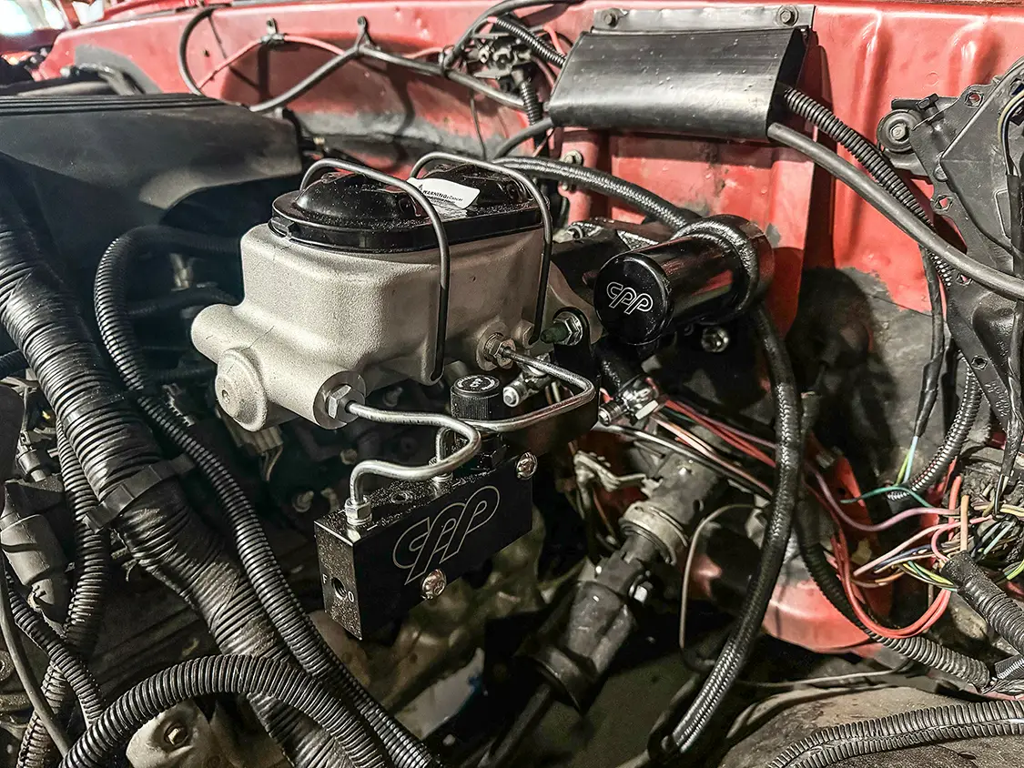 Oh, and we didn’t just stop there—no pun intended. While we were at it, we ditched the old vacuum booster and upgraded to CPP’s slick Hydroboost system. It brings that modern braking feel, giving us smooth, confident pedal response without the mushy mess older systems tend to serve up. And yeah, we ran all new lines using CPP’s brake line flaring tool, which helped us make clean, tight flares with zero drama. That’s the kind of detailed work that can make or “brake” a project.