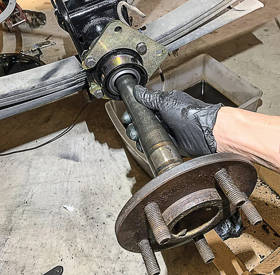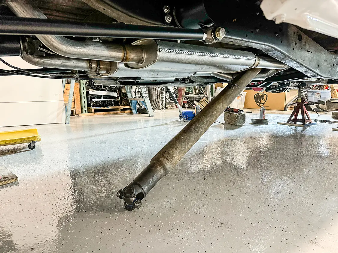 The first step for the rear was to remove the wheels and driveshaft so we could get the factory axle shafts out.