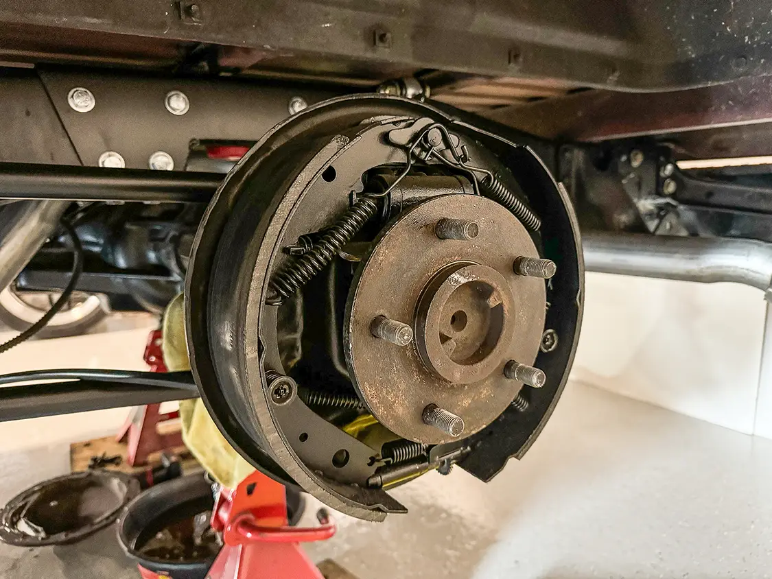 We removed the differential cover and drained all the fluid. This will give us access to the clips that hold in the axles.Removing the drums will give us access to the axle shafts.Now we could unbolt the gears in the differential. We didn’t need to take out the differential to slide out the axles.Now that the clips were removed, we could easily slide out the axle shafts to bolt on the caliper and rotor brackets.Well-engineered parts make for a simple install. The bracket from CPP simply bolted to the axle shafts, and the shafts were reinstalled.Out back, the 14-inch CPP rotor gives this C10 modern brake performance with a clean, factory-style fit.CPP’s rear calipers offer big stopping power and a sleek finish to match the upgraded rotors. These components are built for performance and style.Fully bolted up and bled, the rear CPP brake setup looks right at home—clean, tight, and ready to throw down when it’s time to stop.Here’s a look at the stock front brake setup before being torn down and prepped for the upgrade. We’ve pulled apart the front of these C10s more times than we can count, so if you need a refresher on those steps, hit up StreetTrucksMag.com for a full breakdown.Since we are using new spindles from CPP with this full brake upgrade, we simply unbolted the full spindle and brake assembly as one and removed them as a whole.These CPP modular drop spindles are the backbone of our front brake setup, offering improved geometry and a perfect fit for the big brake upgrade. Built tough and engineered for a lowered stance without sacrificing drivability.