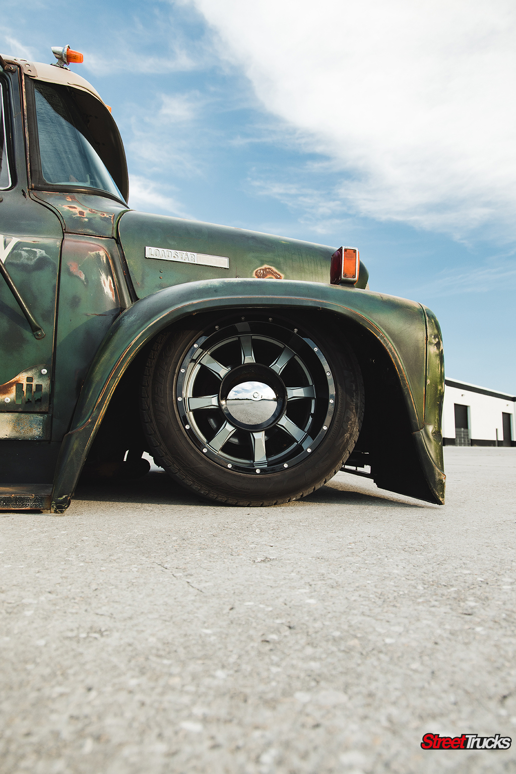 Since the Loadstar looks as big as a semi-truck when compared to standard sized pickups, Dewey wanted to capitalize on that fact by selecting a set of wheels that properly fit his truck’s hefty profile. Fuel’s Maverick wheel had all the bold styling cues he was after from it strong, simple lines, to its overall industrial strength appearance.