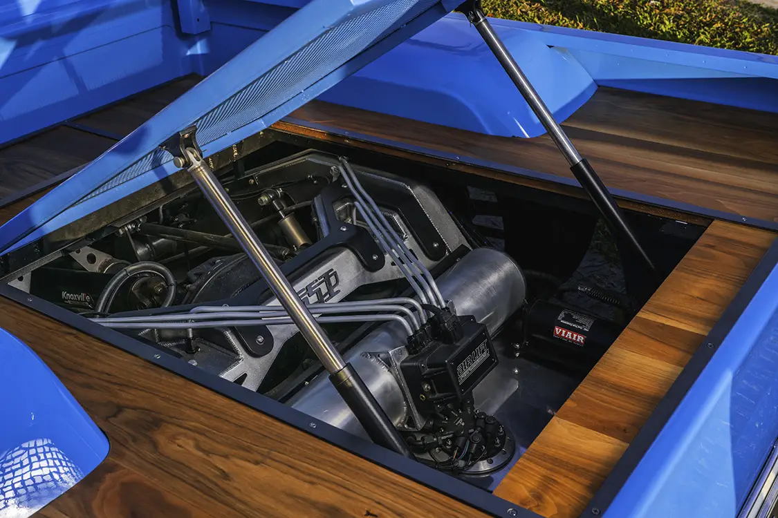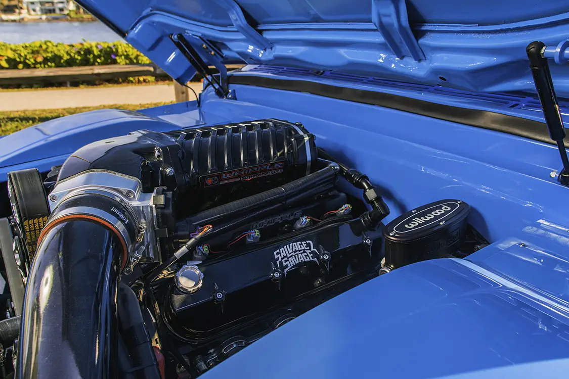 Under the hood, Dimebagged packs a serious punch. A 2024 Chevy Performance LS3 gets boosted by a Whipple 3.0L supercharger, with a Holley EFI system keeping it dialed. Ton’s Performance plug wires and Ultimate Headers push the exhaust through a custom 3-inch stainless setup with Vibrant mufflers. Power moves through a 6L90E trans with a Circle D converter and a Lokar shifter for crisp control.