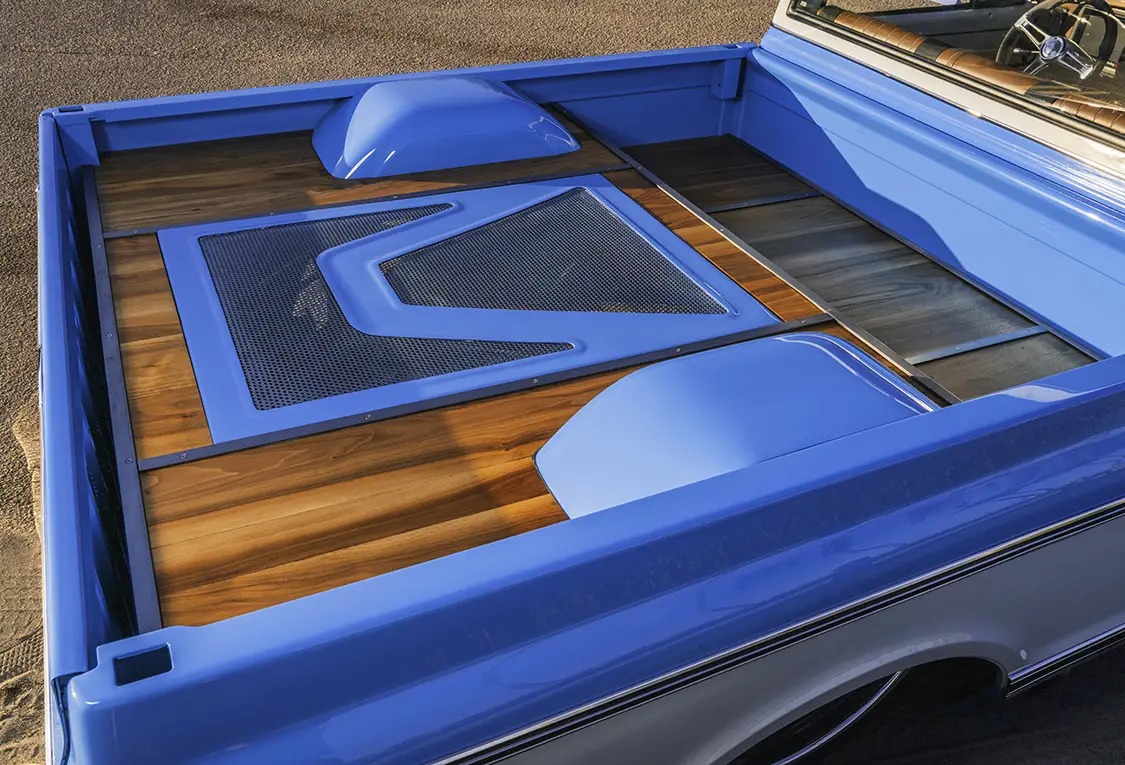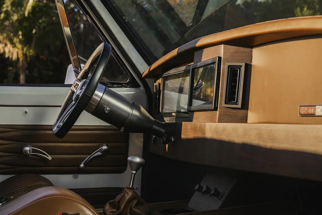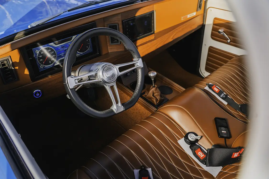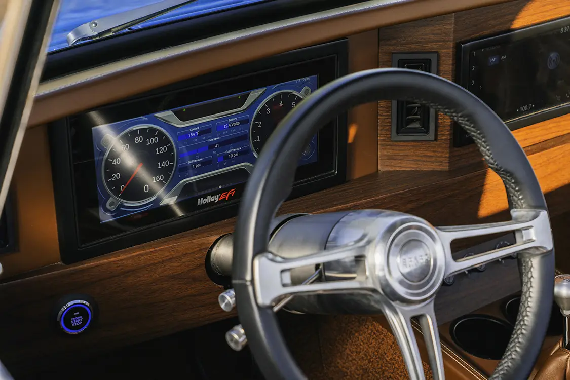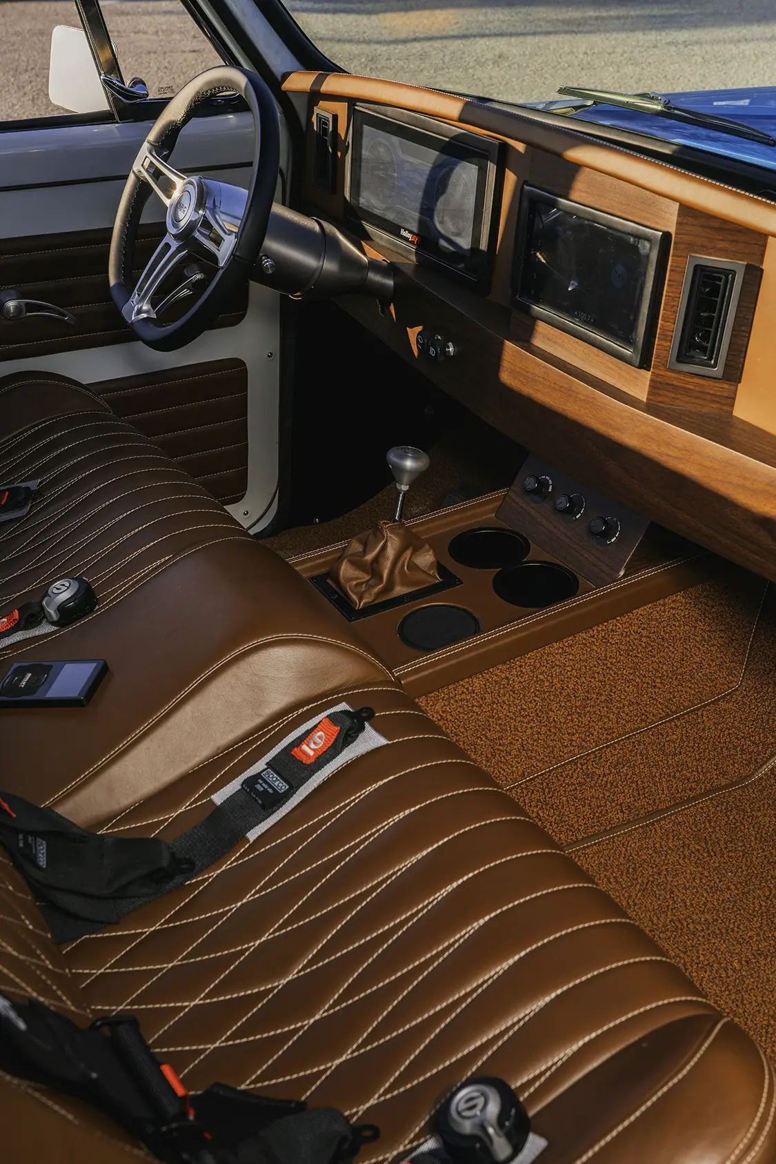 On the outside, the truck stays true to its roots with clean body lines, Porterbuilt hood hinges, and paint and bodywork by Mikey himself. Holley RetroBright LED headlights add a modern touch.