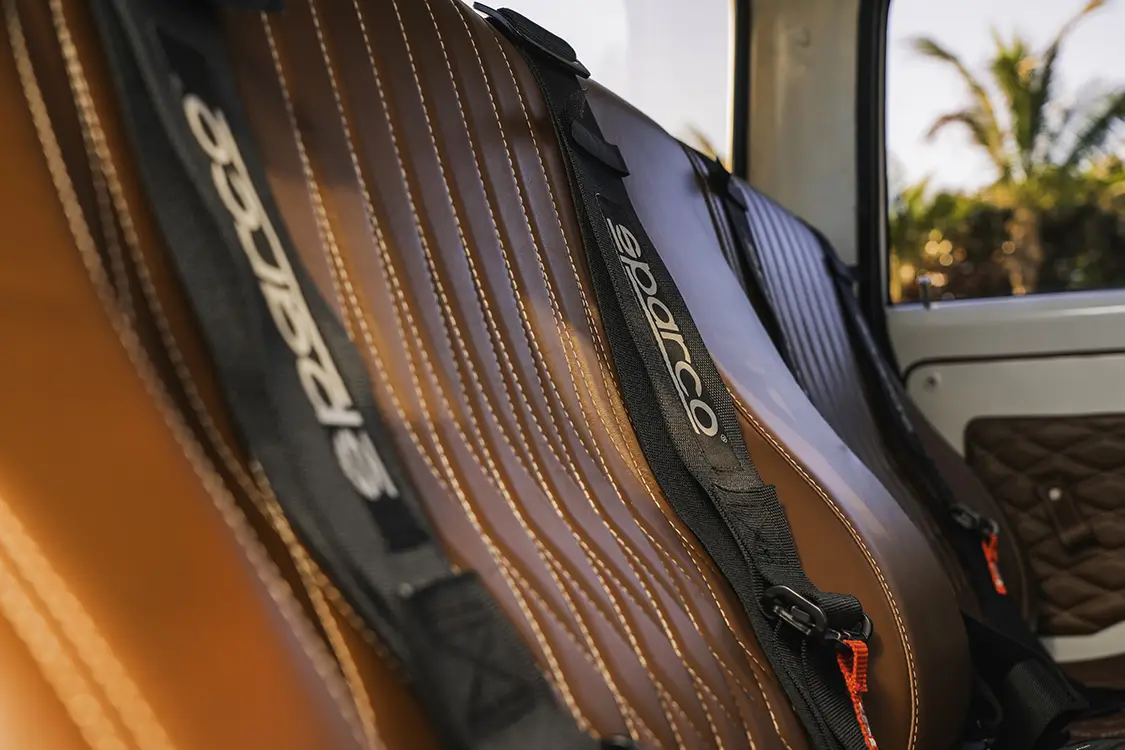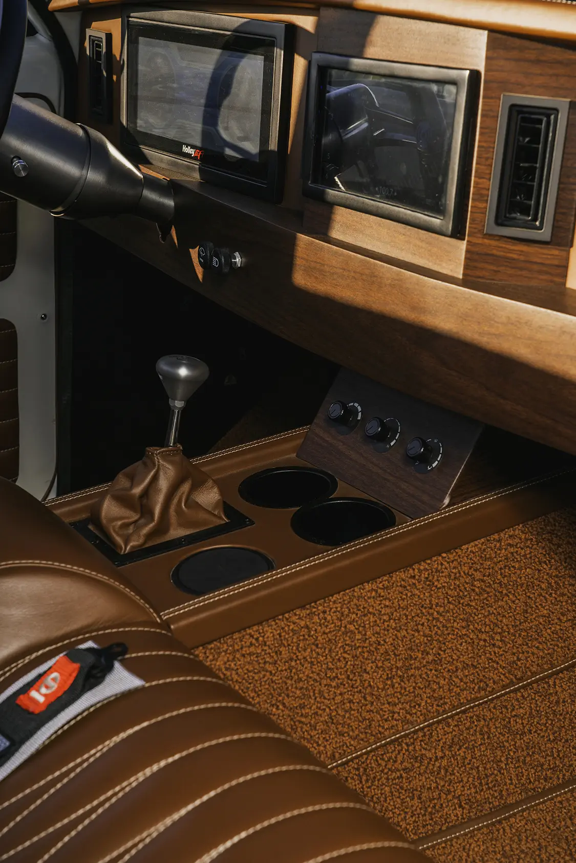 The interior is where this build really stands out with a custom dash, leather wrap, a Holley Pro Dash unit, a Sparc Industries wheel, Restomod Air, and a full JL Audio system to keep the vibes right on every cruise.