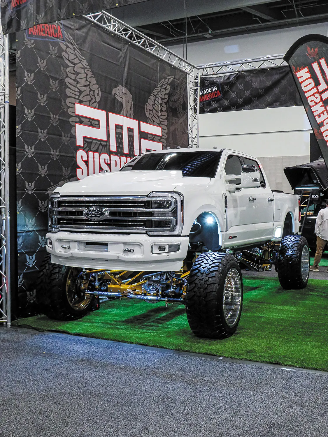 West Hall focused mainly on trucks, SUVs, and everything related to off-roading. Here, I stumbled upon two fantastic trucks my buddy Solomon Lunger brought in. He was excited to showcase some new parts he’d just created and a few fantastic companies he had partnered with to complete the looks of both trucks!