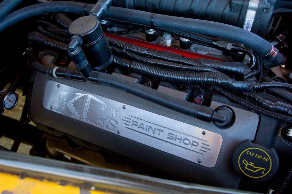 Special Thanks from Owner: “Thank you to Aeromotive Fuel Systems, American Powertrain, Amsoil, Be Cool Radiators, Black Widow, Budnik Wheels, Dakota Digital, Dennis Carpenter, Falken Tire, Ford Performance, Heatshield Products, Hydes Leather, JE Reel Driveline, No Limit Engineering, Odyssey Battery, Pinstriping by Tanner, Power by the Hour Performance, Raingear Systems, RestoMod Air, RideTech, Roush Performance, Southwest Ford, Stang-Hi Performance and Wilwood Brakes.”