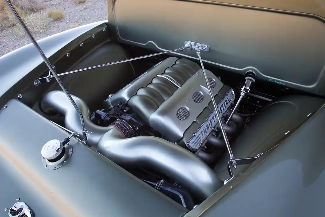 Knowing that the base of any good build is a good chassis, Dermie turned to Art Morrison to start the build off right. The custom chassis came with a custom triangulated four-bar rear suspension system, modified C5 Corvette front suspension system and Strange Engineering 4.11 posi-traction rearend, as well as air shocks and 14-inch Baer brakes. With the ultimate performance suspension system handled, Dermie took some inspiration from one of his hot rod idols, Chip Foose, and ran 18- and 20-inch Foose wheels finished in chrome and wrapped in sticky Toyo rubber.