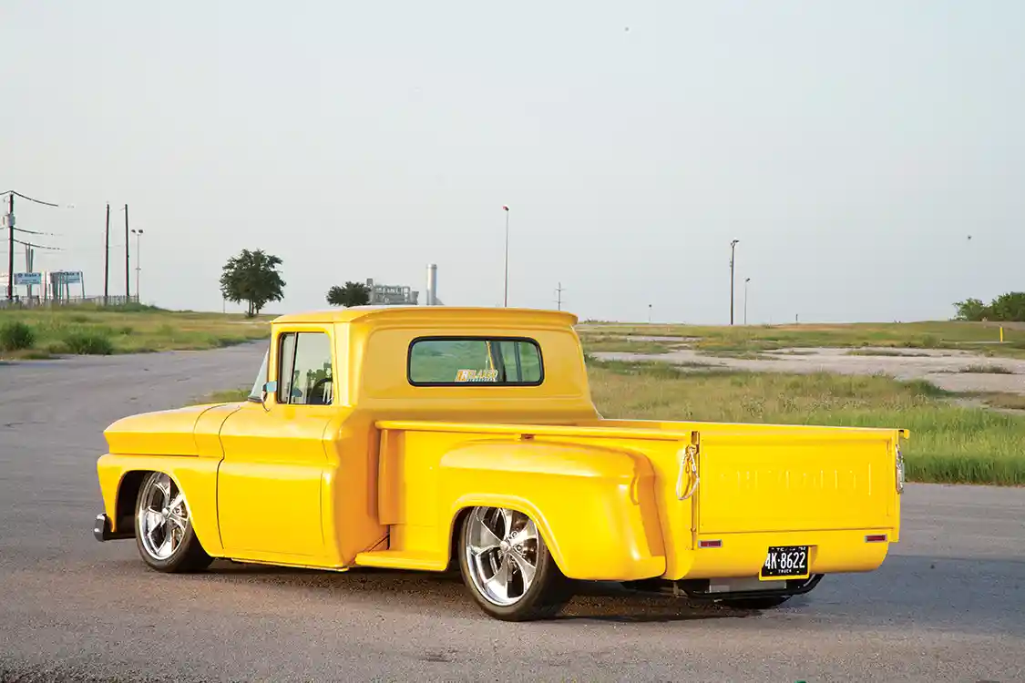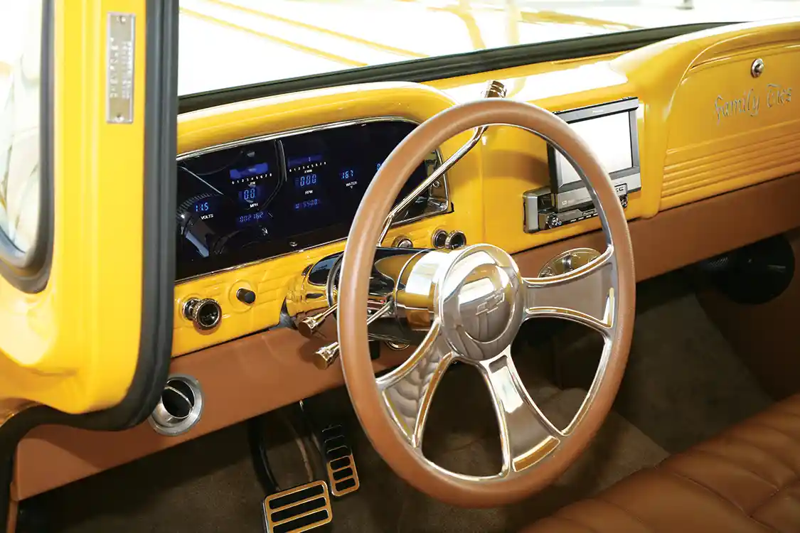 David wanted to mix some modern convenience with the class and elegance of yesteryear, so he knew that a lower ride height and the perfect set of staggered billets was what he was after. Working with the crew at Chaotic Rods & Customs, the C-10 was soon brought down to a more acceptable ride height via adjustable air suspension at all four corners. Next up, a set of 20- and 22-inch Billet Specialties wheels was bolted up and wrapped with Nitto NT 555 rubber for a bit of a sporty hot rod mix. A set of Baer brakes takes care of the stopping duties, and then they moved on to the body, engine and interior.
