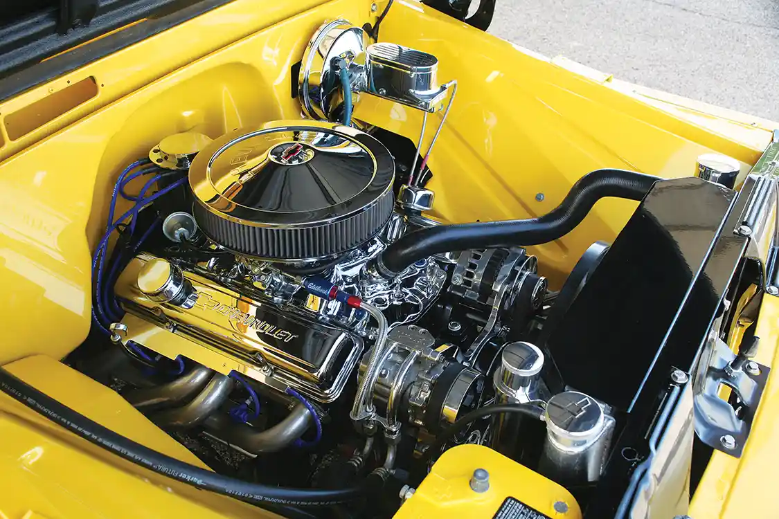 WANTING A RELIABLE CRUISER THAT’S EASY TO WORK ON, DAVID OPTED TO BUILD A SMALL-BLOCK 350 AND KEEP THINGS SIMPLE AND CLASSY UNDER THE HOOD.