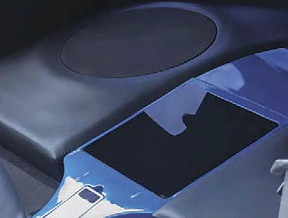 Eric knew the exterior had to be overhauled as well, but didn’t want to overdo it. For the front end, he upgraded the grille shell to a chrome version from a ’92 S-10 with a billet insert. On the rear, he shaved the taillights and added a Grant Kustoms Cali-combo with two AVS 10-inch LED taillights molded in. The rest of the body was shaved of door handles, cab seams and emblems. The mirrors were swapped out for a shiny pair originally made for motorcycles. Eric and Ryan did all of the bodywork to the S-10 and covered it in Chrysler’s Intense Blue Pearl.