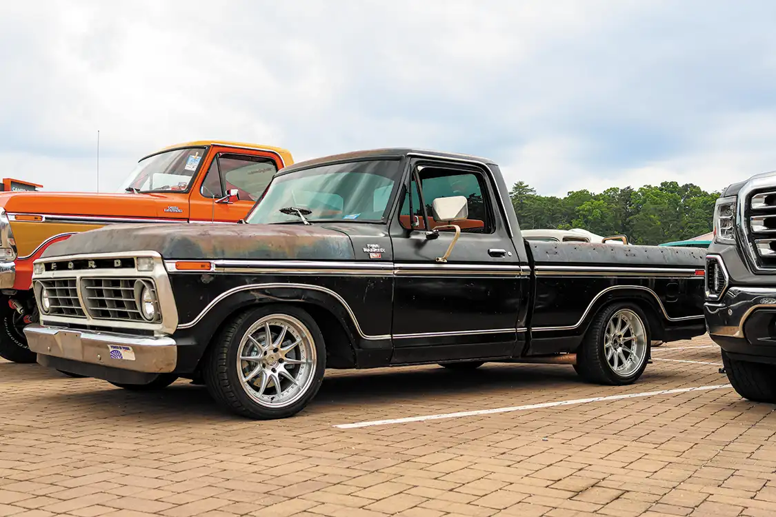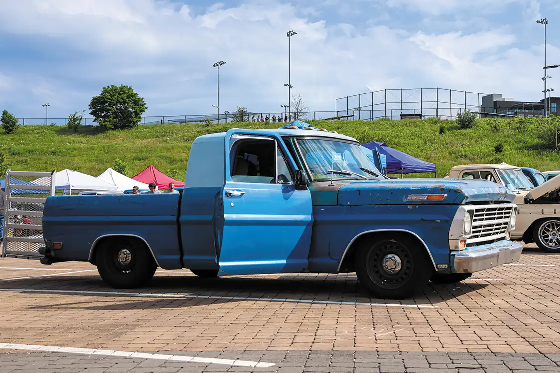 You’ll find trucks from the mid-1950s through the 90s. Slammed short beds. Lifted crew cabs. Full patina. Fresh paint. Some parked with signs and polish. Others pulled straight off the highway. It’s not about one style. It’s about showing up.
