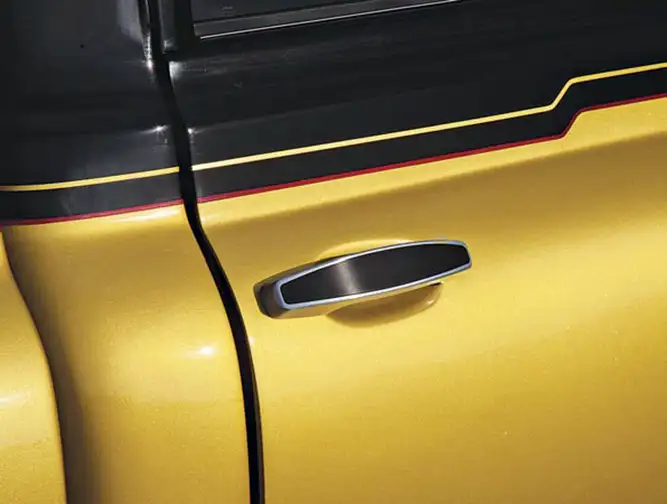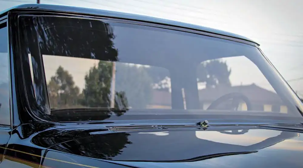 The exterior of the truck was down to not much more than a cab and doors. It started to resemble an old Johnny Cash song with a front end courtesy of a 1968 Classic Industries catalog and a new short bed. The next step was to slick out the sheet metal, including the drip rails, which were replaced with smoothed round bar. To maintain similar but updated styling cues, the door handles were moved back and replaced with a set of Lokar Goolsby billet touch handles and AVS bear claw latches. The system unlocks thanks to a Bluetooth-enabled Viper SmartKey system. Furthering the modernization of the exterior is a set of Truck Lite LED headlights. A flush-fit front windshield and rear window were formed from acrylic by AM Hot Rod Glass to provide optical clarity and safety. The vent windows were cut out in favor of a One-Piece Products setup.