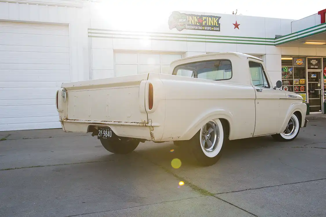It was a 1962 Ford F-100 Unibody that had been purchased brand new off the lot and never touched. With the exception of a paint job in the ’80s to freshen up the finish, the truck was just driven and enjoyed for close to 40 years by the original owners, who then sold it to Jonathan. At the time, he was close to done with his ’98 Ford Ranger, and he wanted to move on to something else. But when the kids came, it was like a vacuum siphoned away his spending money, and the truck sat in his garage for around five years, never moving an inch.