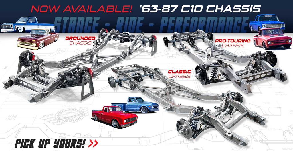 TCI Engineering’s ’63-’87 Chevy C10 “Grounded” chassis that lays frame when aired out, to the track-ready “Pro-Touring” chassis TCI Engineering has the chassis for you. The frame is laser cut and jig welded for the utmost precision and strength. Widened front frame rails to allow more room for headers and steering components. Narrowed rear to allow for outboard-mounted shocks and wider tires. 12-piece center section keeps the frame from twisting no matter how much horsepower you throw at it, while still leaving plenty of room to run a 3-inch diameter exhaust. All TCI Chassis come standard with a complete Currie 9-inch differential including 31 spline axles with your choice of gearing.